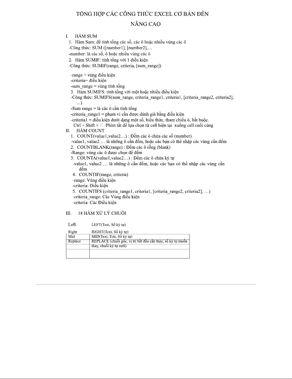 Tổng Hợp Công Thức Excel Cơ Bản & Nâng Cao - Tài Liệu Học Tập
