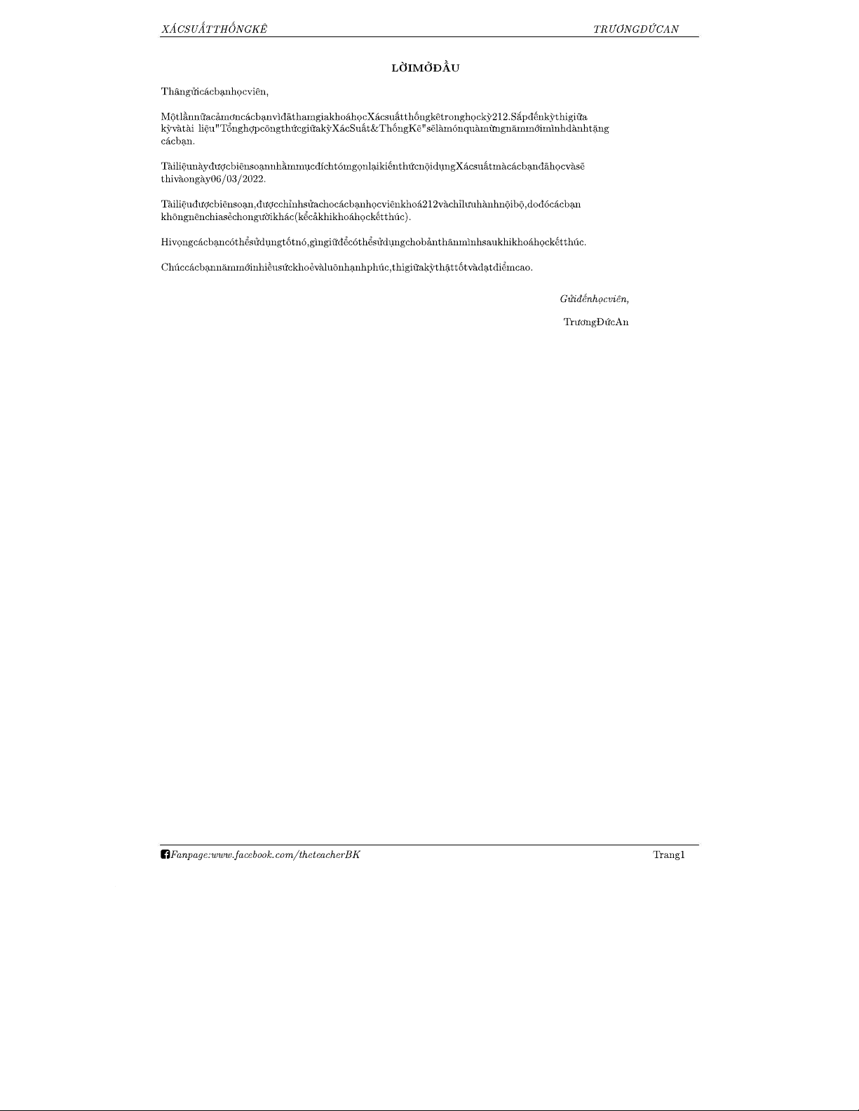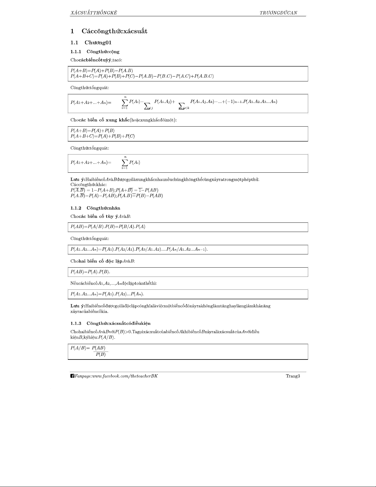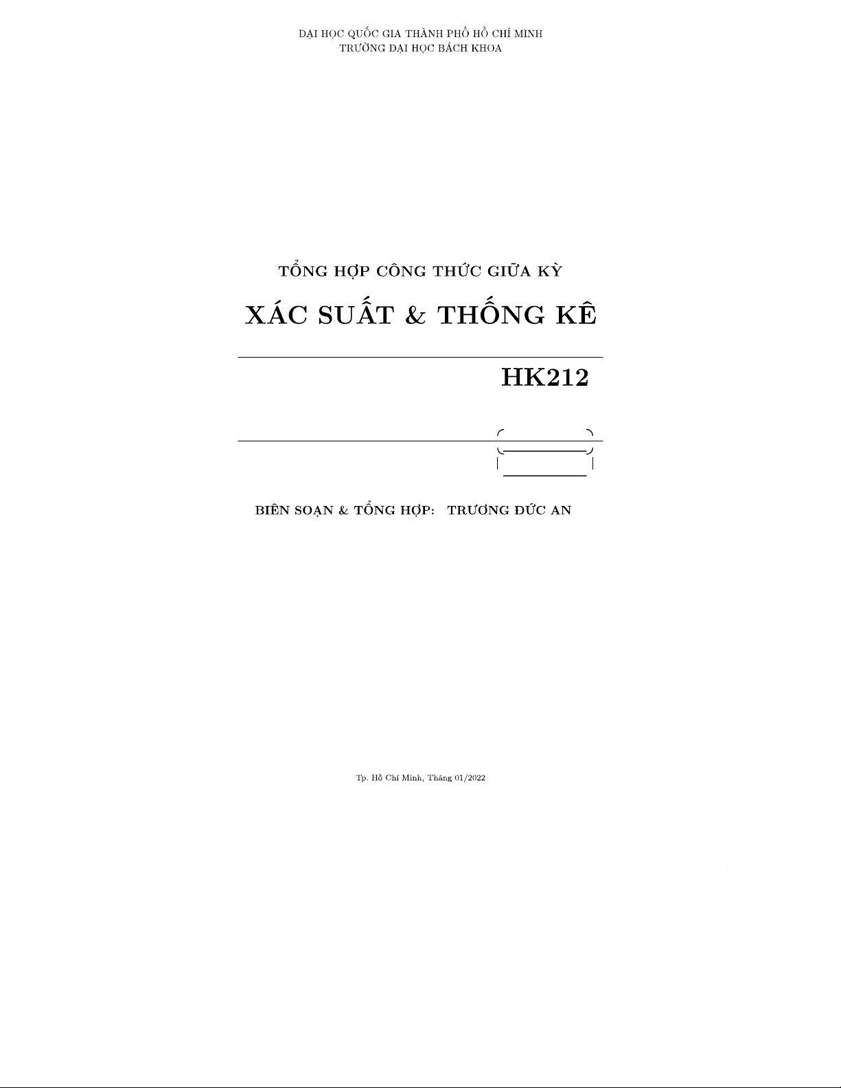 Tổng hợp công thức giữa kỳ Xác suất & Thống kê - HK212