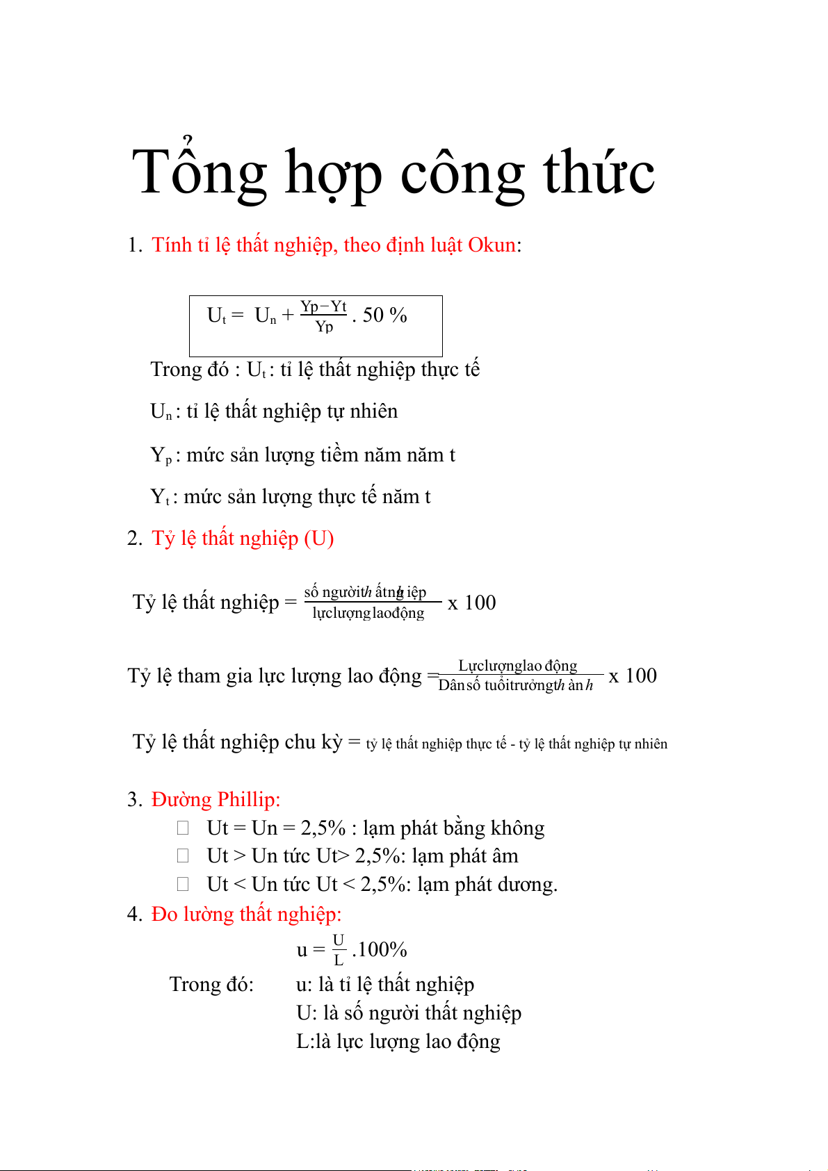 1. Tính tỉ lệ thất nghiệp, theo định luật Okun: U Yp−Yt t = Un + . 50 % Yp