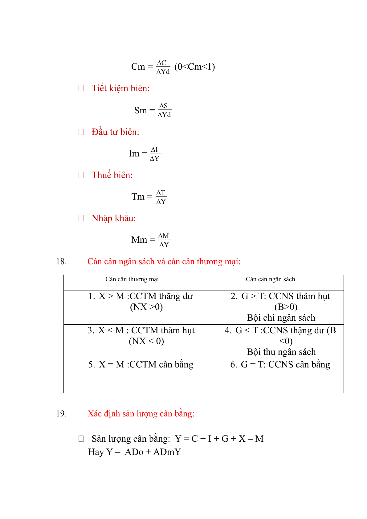 Các hàm số của tổng cầu: Tiêu dùng biên: Cm = ∆C (0∆Yd Tiết kiệm biên: Sm = ∆S ∆Yd Đầu tư biên: Im = ∆I ∆Y Thuế biên: Tm = ∆T ∆Y Nhập khẩu: Mm = ∆M ∆Y 18.