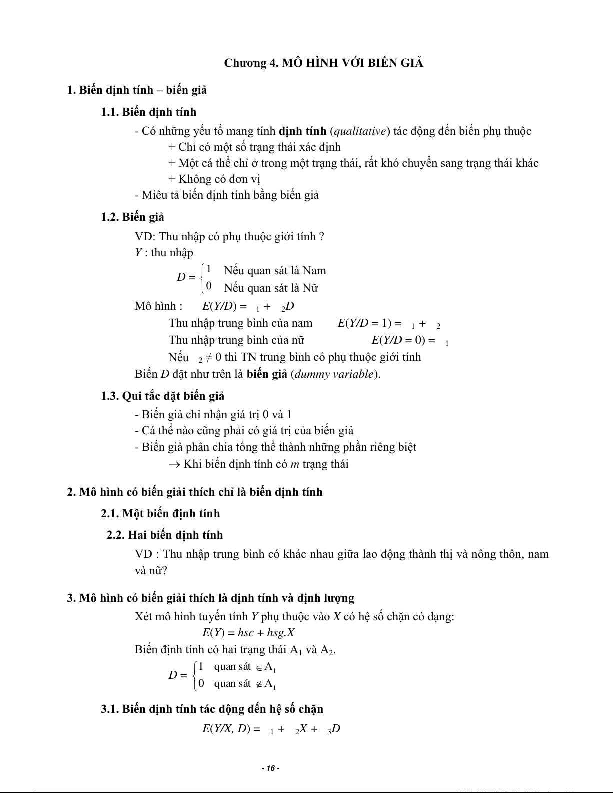 - Miêu tả biến định tính bằng biến giả 1.2. Biến giả