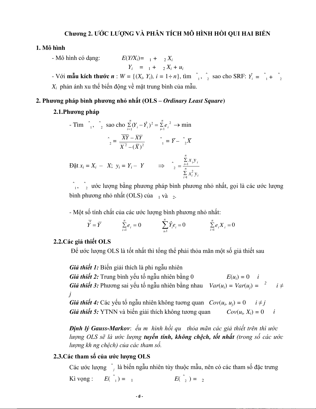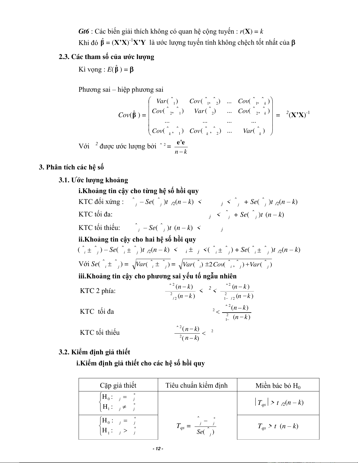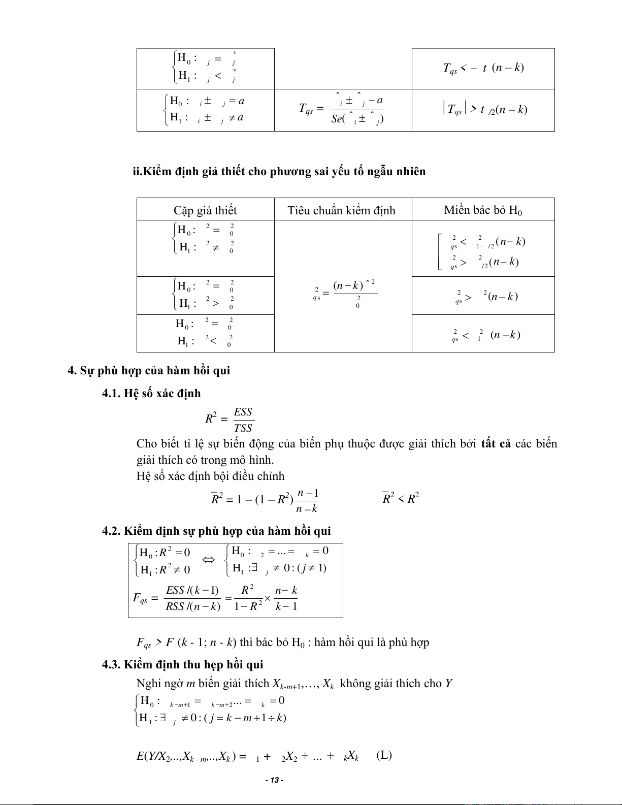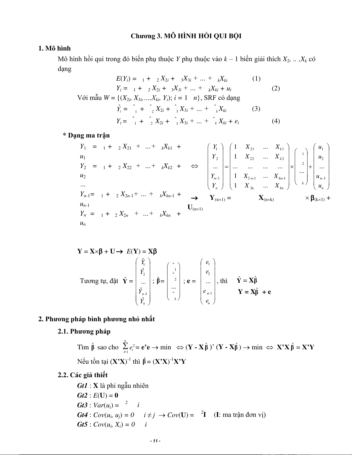 Xét mô hình: E(Yi) = 1 + 2 X2i + 3X3i + … + kXki