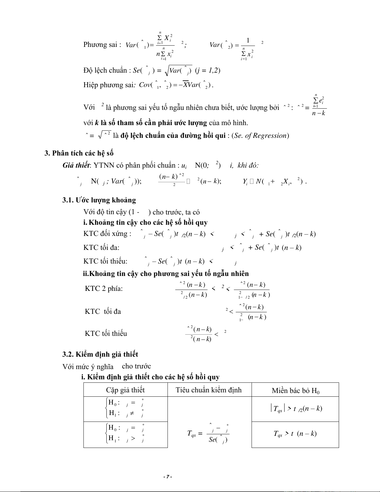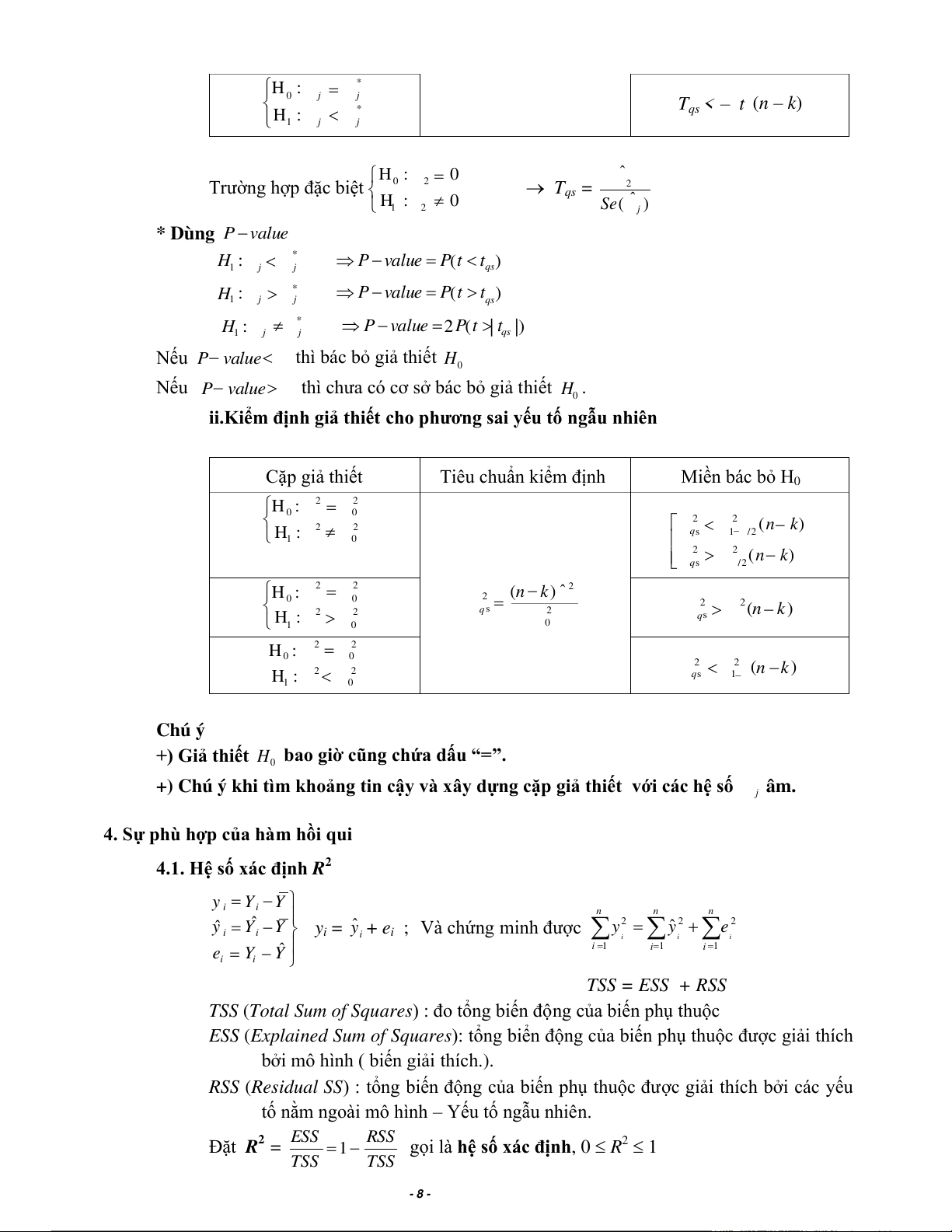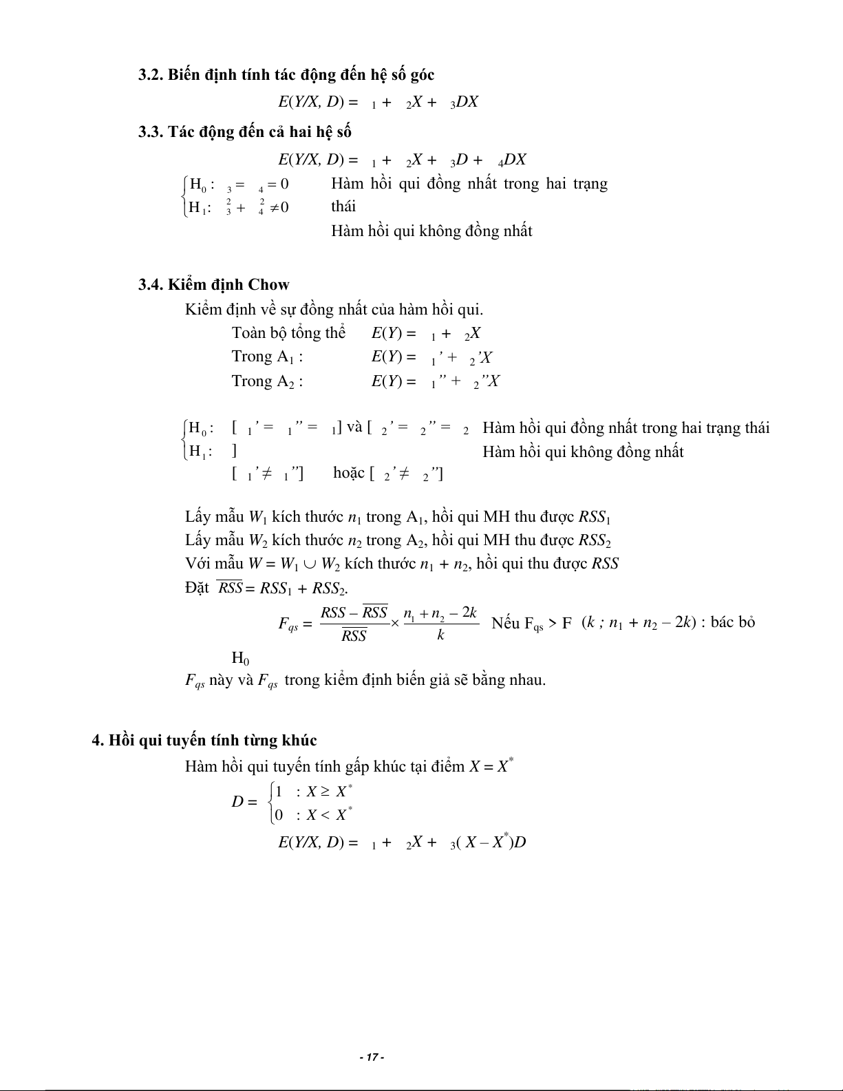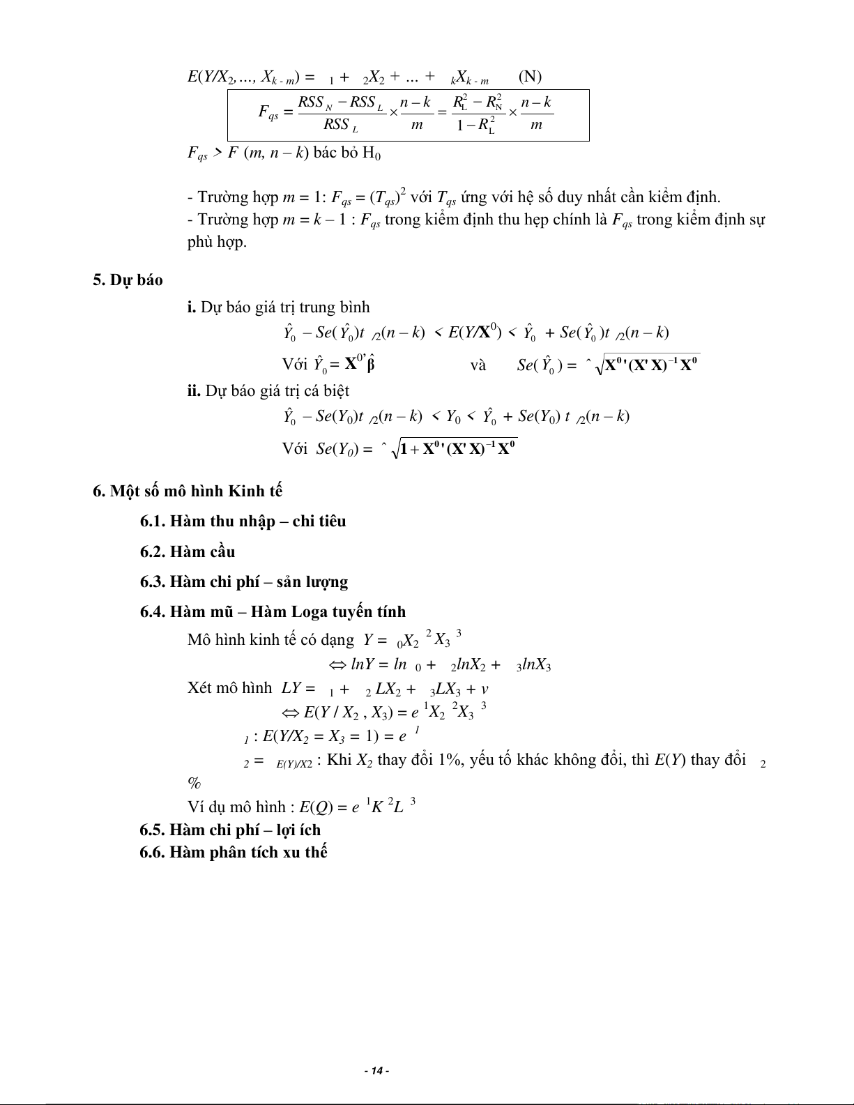 Xét mô hình: E(Yi) = 1 + 2 X2i + 3X3i + … + kXki