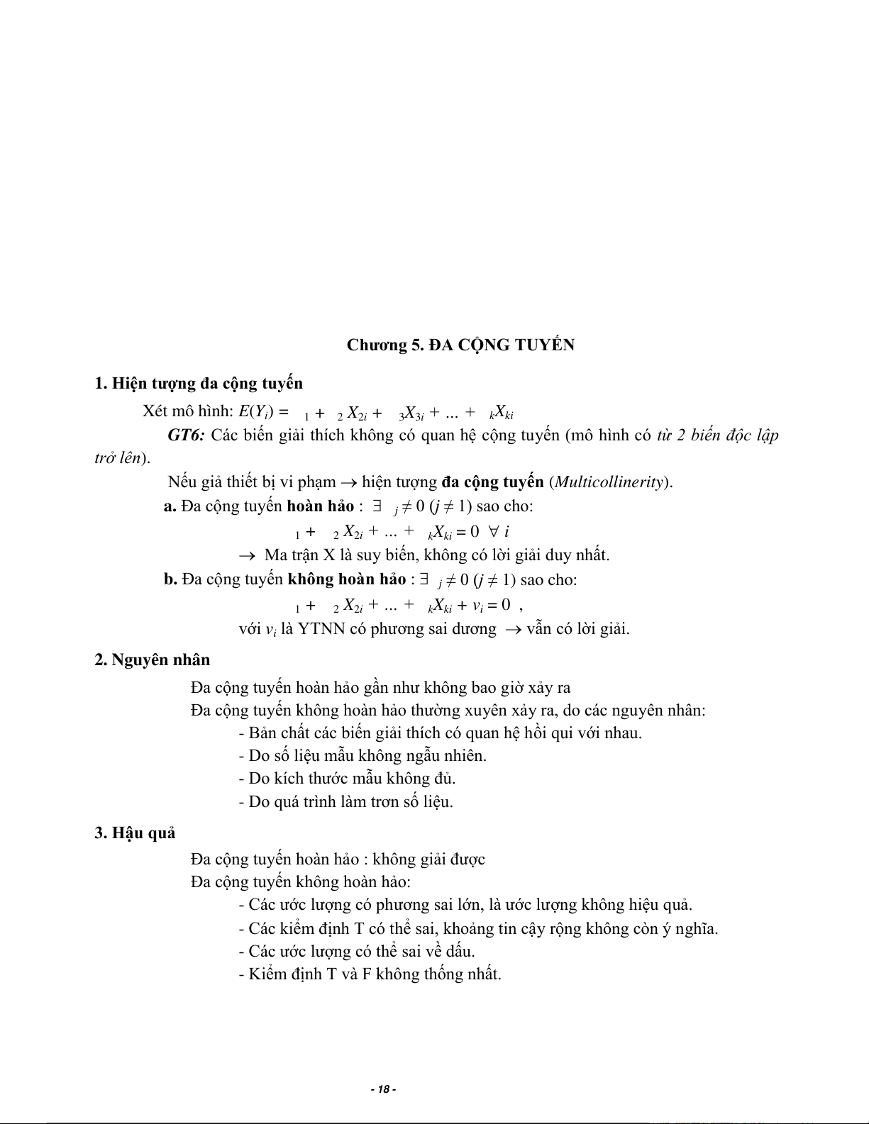 - Bản chất các biến giải thích có quan hệ hồi qui với nhau.