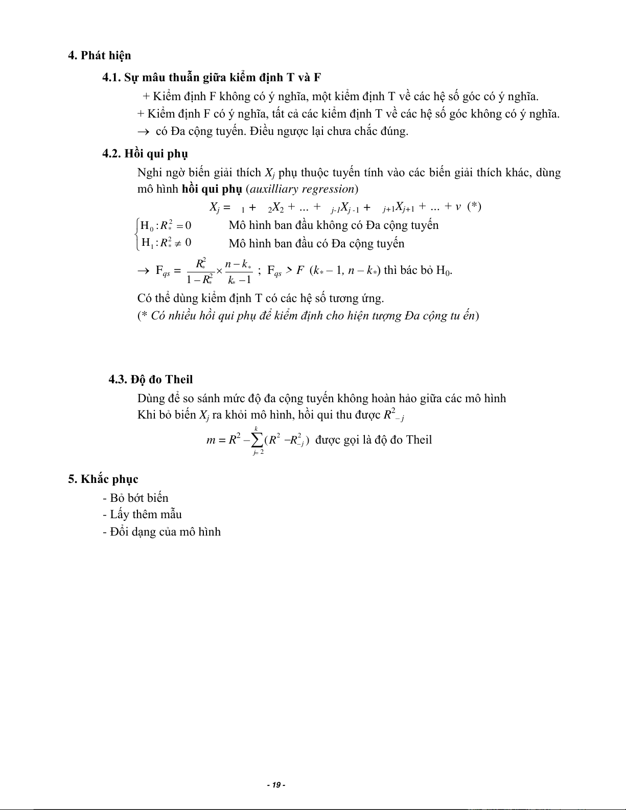 - Kiểm định T và F không thống nhất. - 18 - 4. Phát hiện