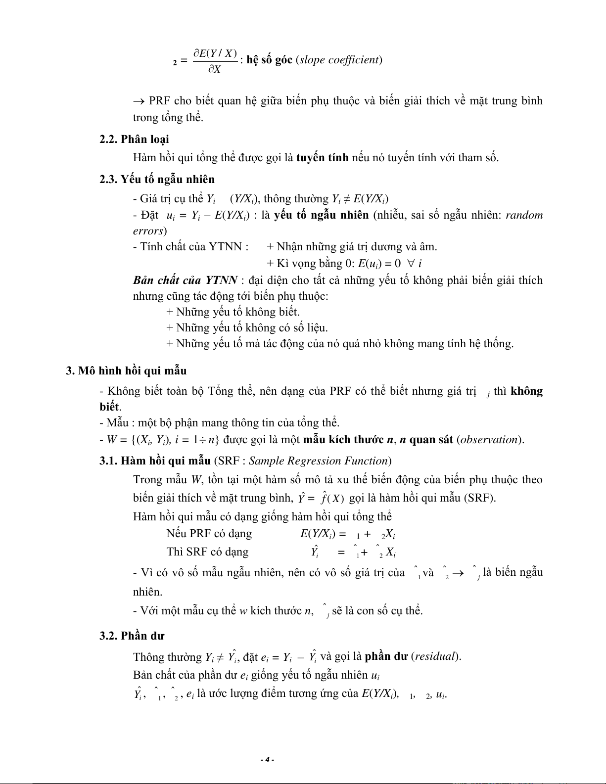 - Đặt ui = Yi – E(Y/Xi) : là yếu tố ngẫu nhiên (nhiễu, sai số ngẫu nhiên: random errors)