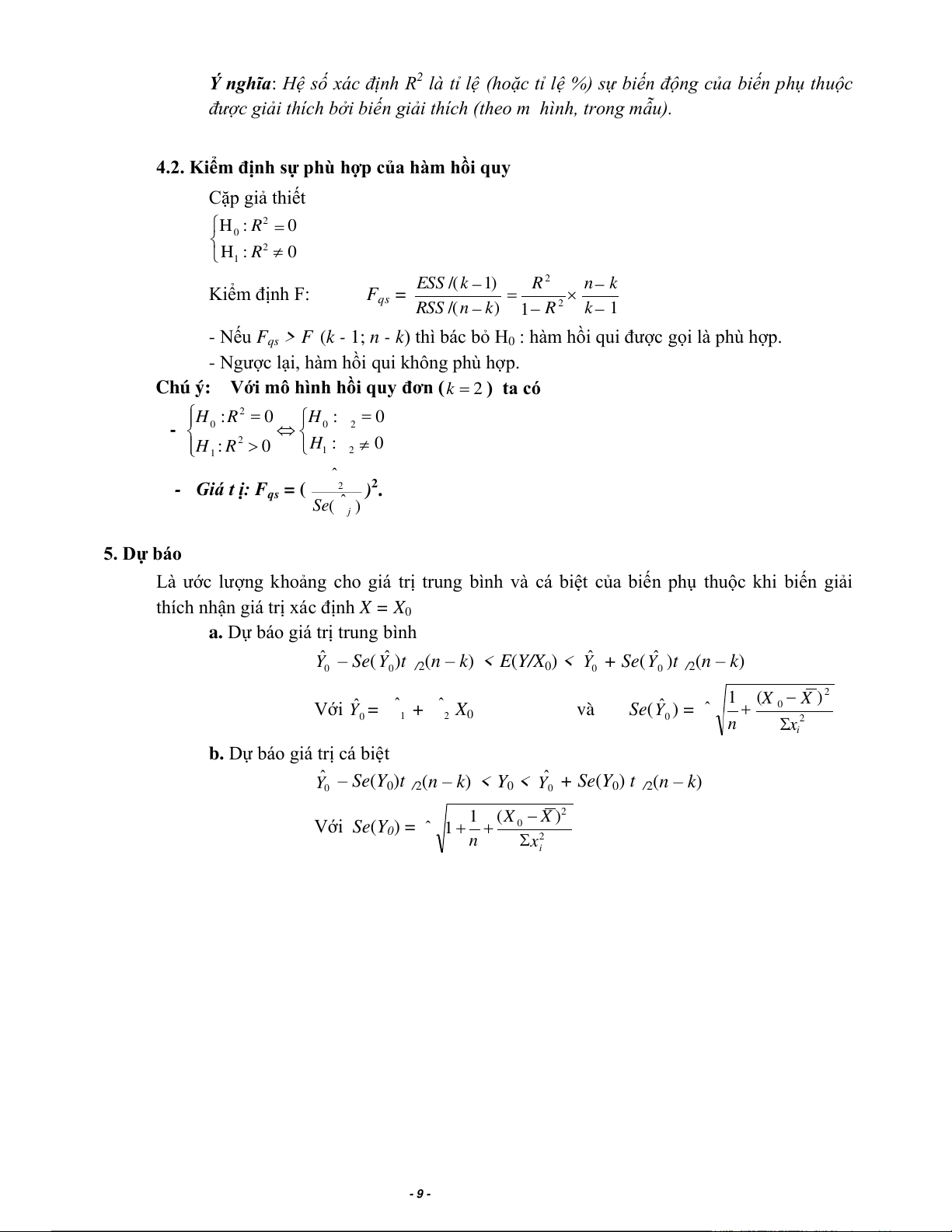 - Bằng phương pháp kiểm định thống kê: kiểm định giá trị các tham số, bản chất mối quan hệ