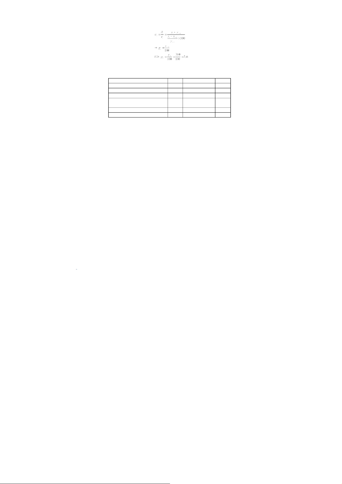Áp dụng với dãy số tuyệt đối thời kỳ Các chỉ tiêu phân tích Định gốc Liên hoàn Bình quân Lượng tăng = yi – 1 y δi = y i–i- 1y δ=yn−y1 (giảm) tuyệt (i = 2 đến n) (i = 2 đến n) n−1 đối Tốc độ phát Ti = yi ti = yi t=n−1 y1 y √yn i−1 triển y1 (i = 2 đến n) (i = 2 đến n) Tốc độ tăng yi−y1 yi−yi−1 (giảm) A r = t−1=t−100 % i = ai = y1 yi−1