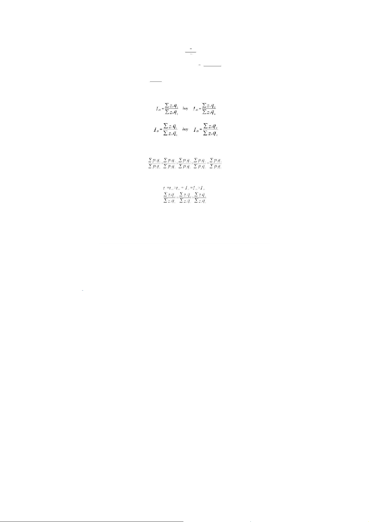 - Chỉ số chỉ tiêu chất lượng: Ip(A/B)=∑pAQ ∑