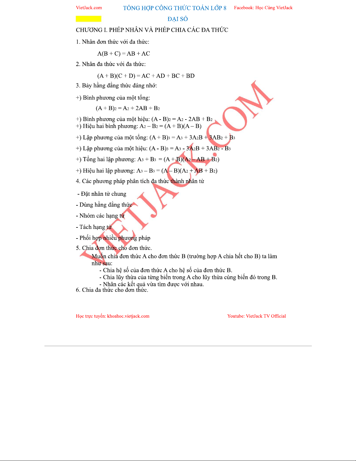 Tổng Hợp Công Thức Toán Lớp 8 - Đại Số & Hình Học