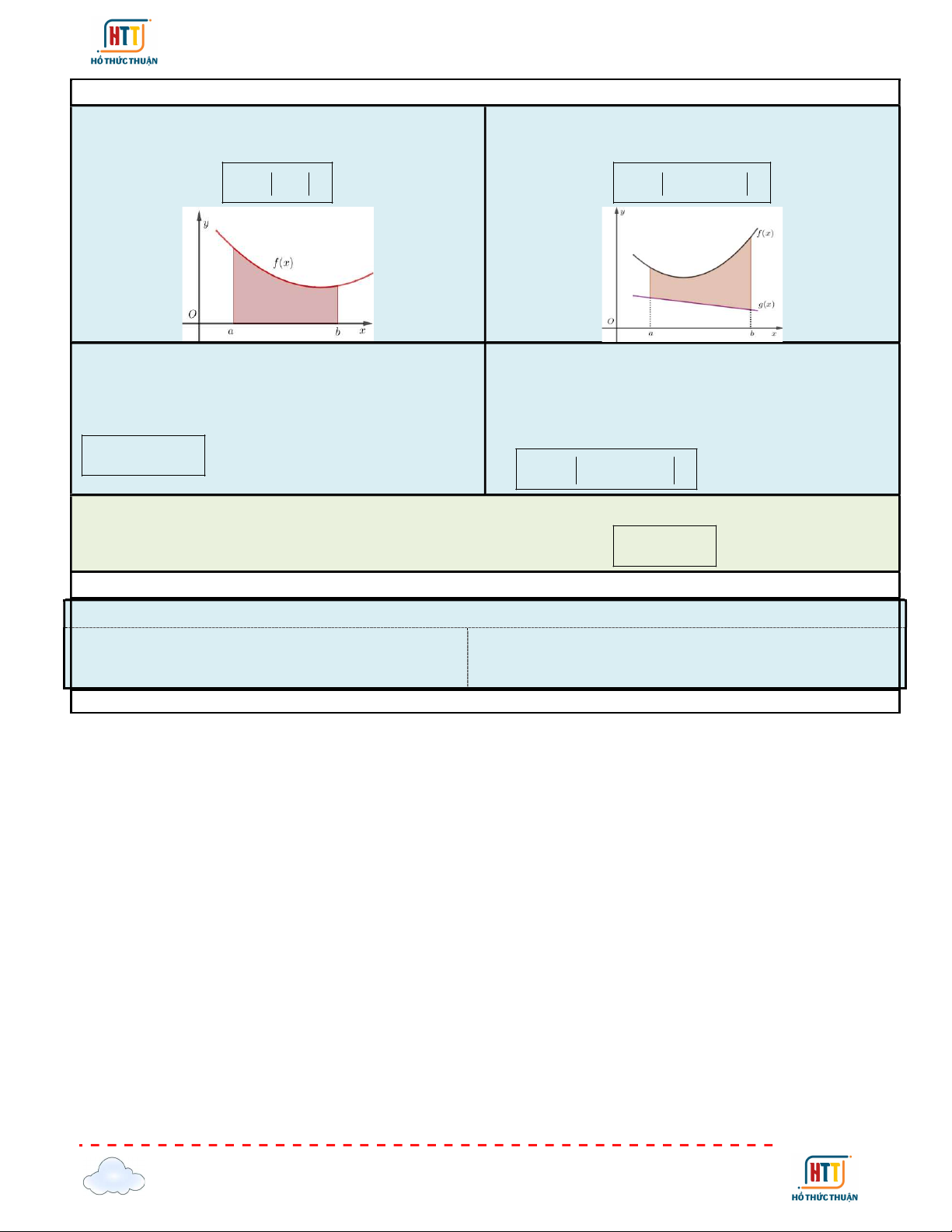 x gx dx f xdx g xdx a a a a a c b b b f x b dx f x c dx f xdx f xdx f tdt f udu a a b a a a Nếu f x 0, x ; a b thì b f xdx 0. a