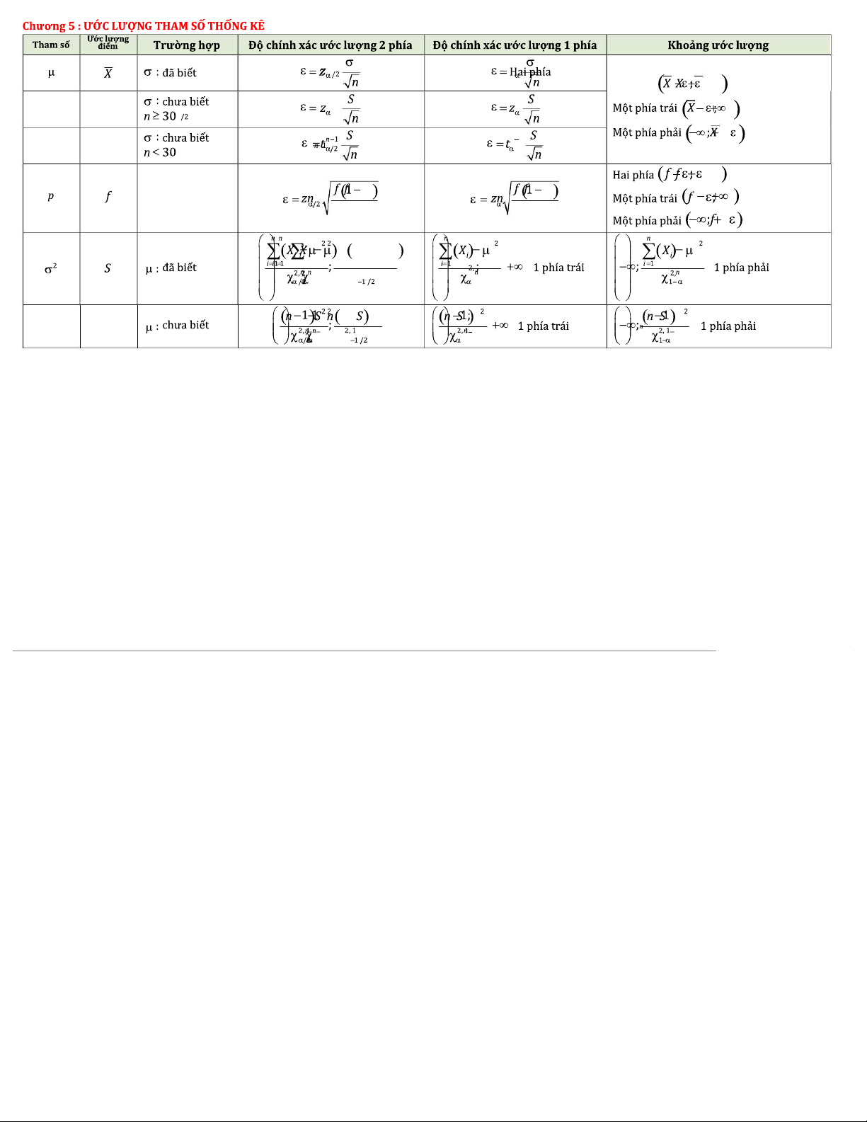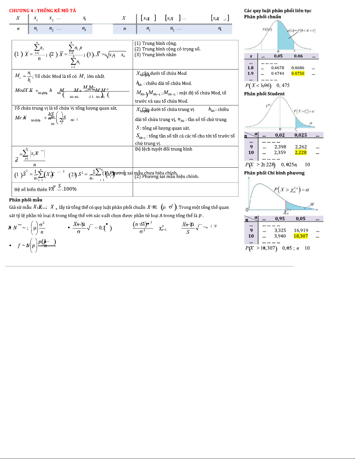 TỔNG HỢP CÔNG THỨC XÁC SUẤT VÀ THỐNG KÊ - CHƯƠNG 1 ĐẾN CHƯƠNG 7