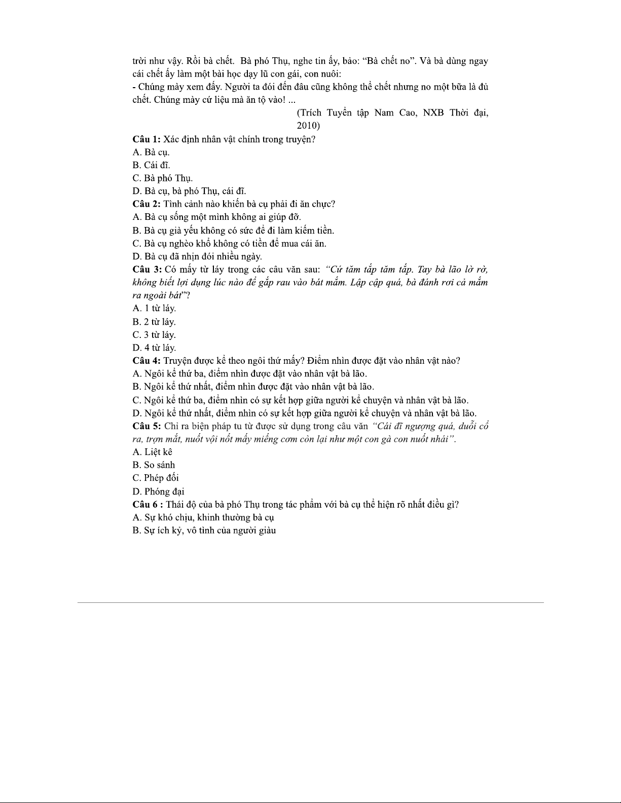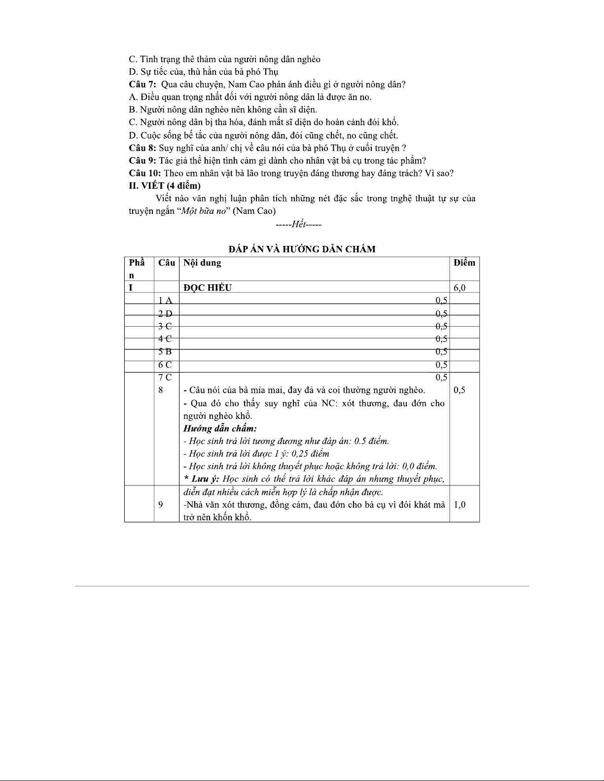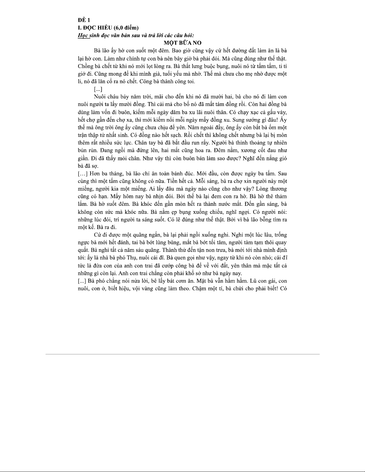 TỔNG HỢP ĐỀ THI CÁC PHẦN TỪ TRUYỆN NGẮN "Một Bữa No" (Nam Cao) - MÔ TẢ - ĐÁP ÁN