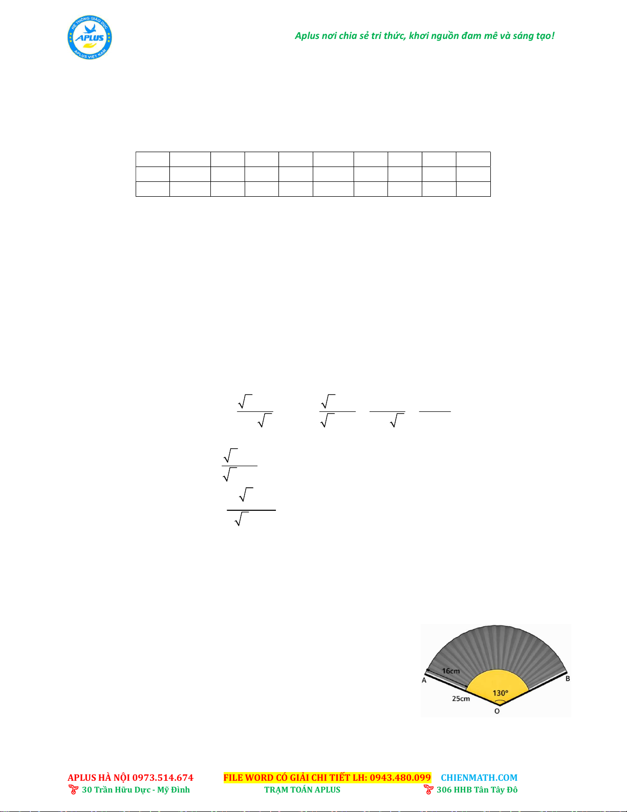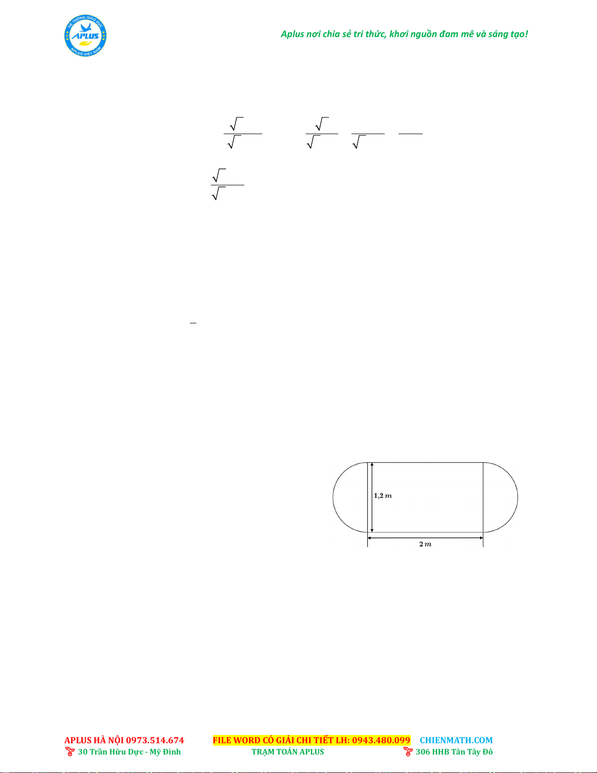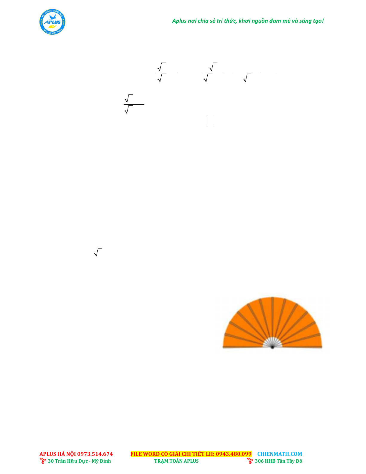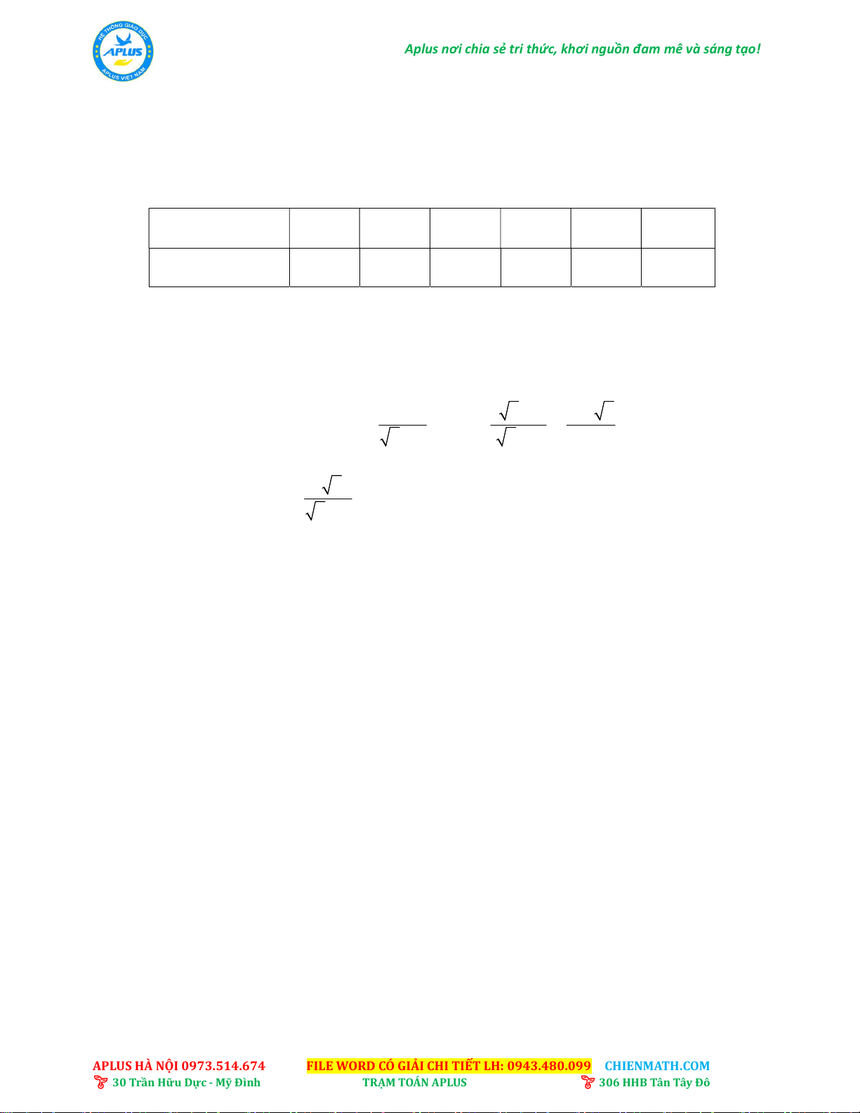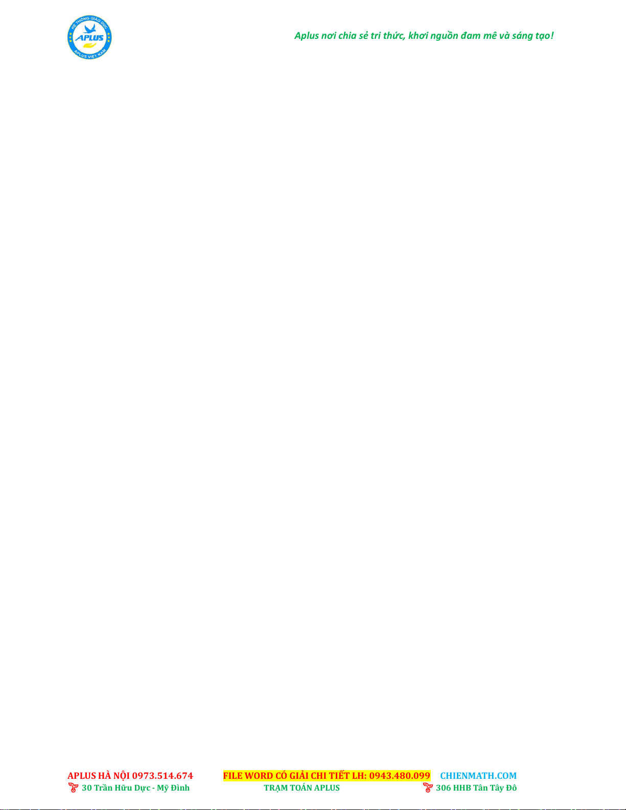 APLUS HÀ NỘI 0973.514.674 FILE WORD CÓ GIẢI CHI TIẾT LH: 0943.480.099 CHIENMATH.COM