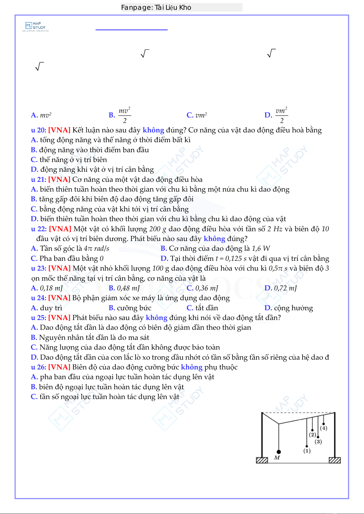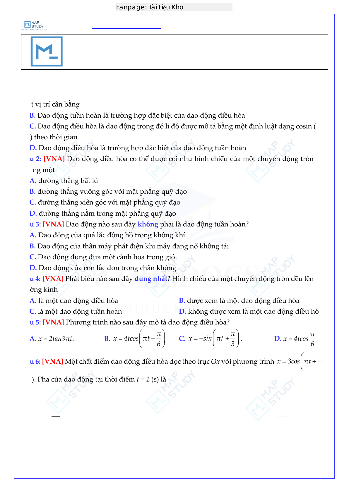 Câu 3: [VNA] Dao động nào sau đây không phải là d ao động tuần hoàn? Worldocs