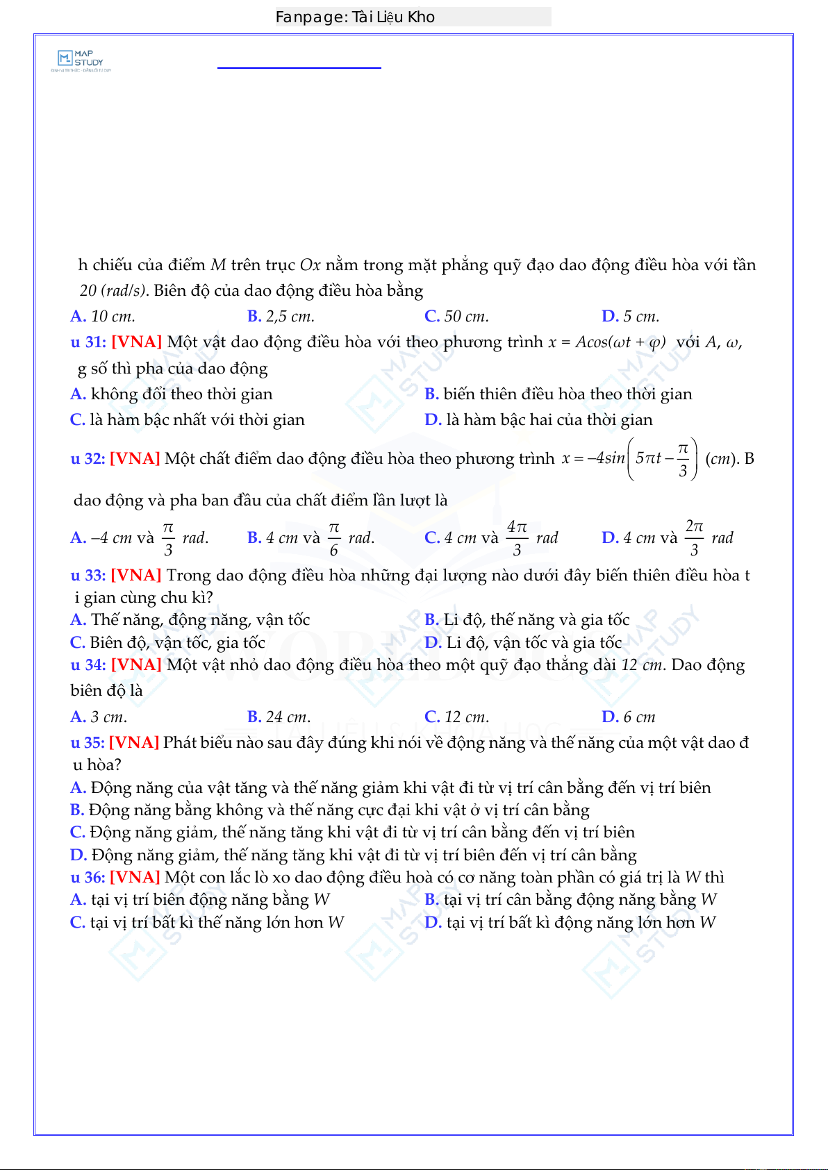 Câu 6: [VNA] Một chất điểm dao động điều hòa dọc