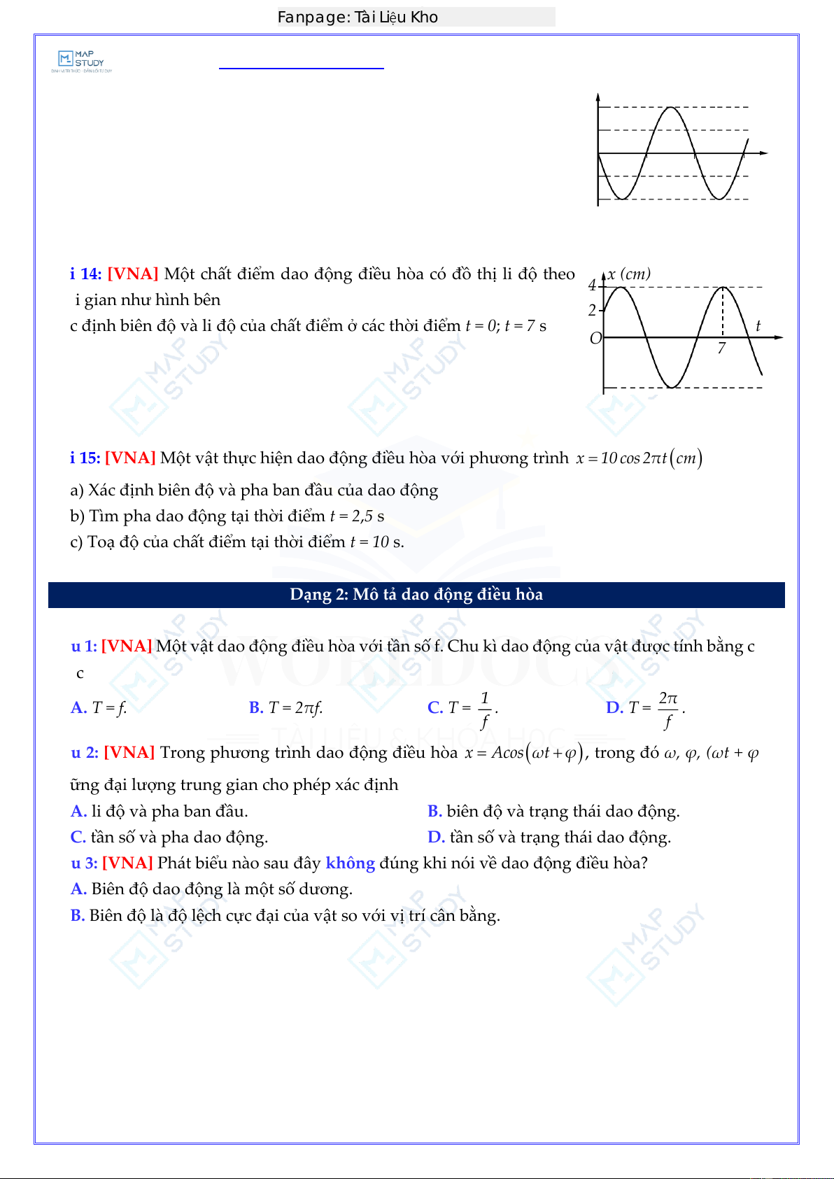 Bài 15: [VNA] Một vật thực hiện dao động điều hòa với phương trình x = 10 cos 2πt (cm) Worldocs