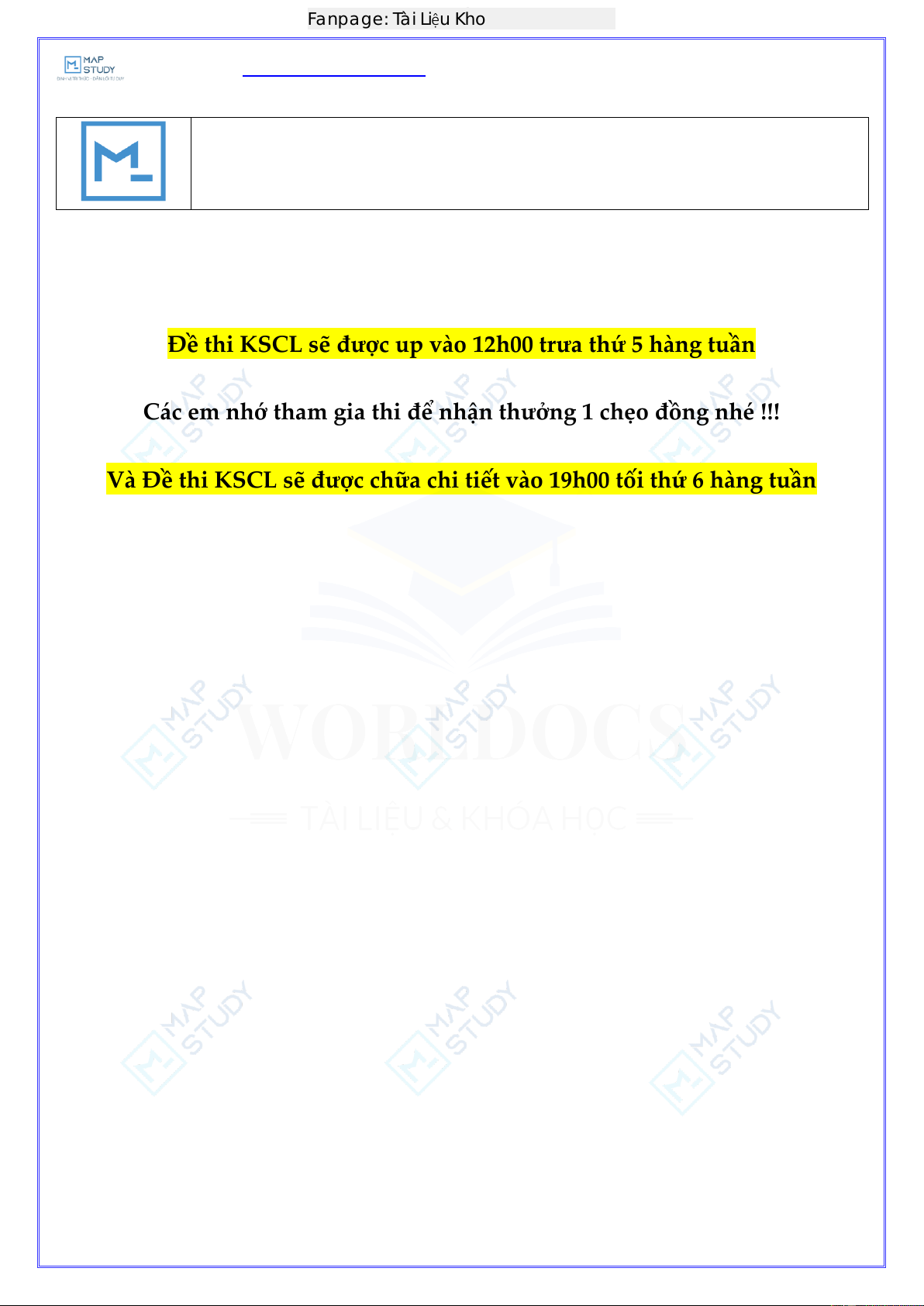 Thứ 5 12h00 Thi online đề KSCL Fanpage Worldocs
