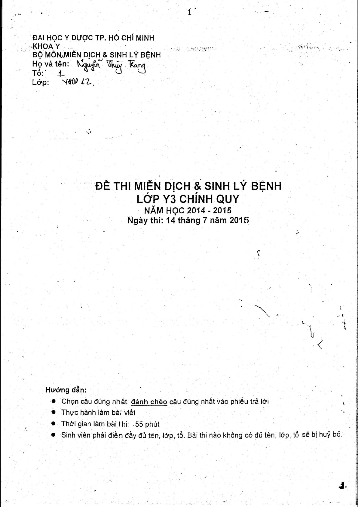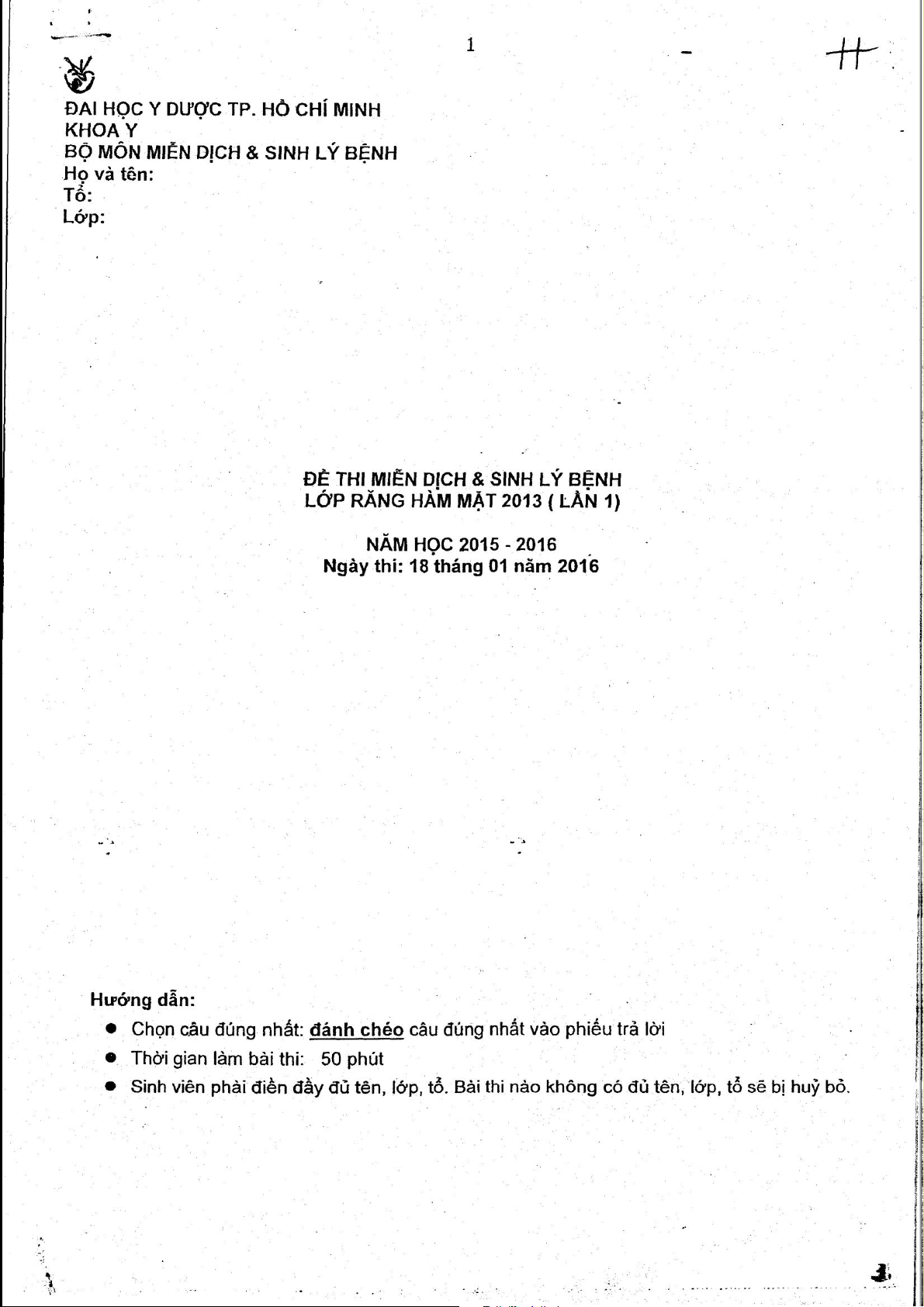 Tổng Hợp Đề Thi Sinh Lý Bệnh Miễn Dịch | Đại học Y Dược Thành phố Hồ Chí Minh