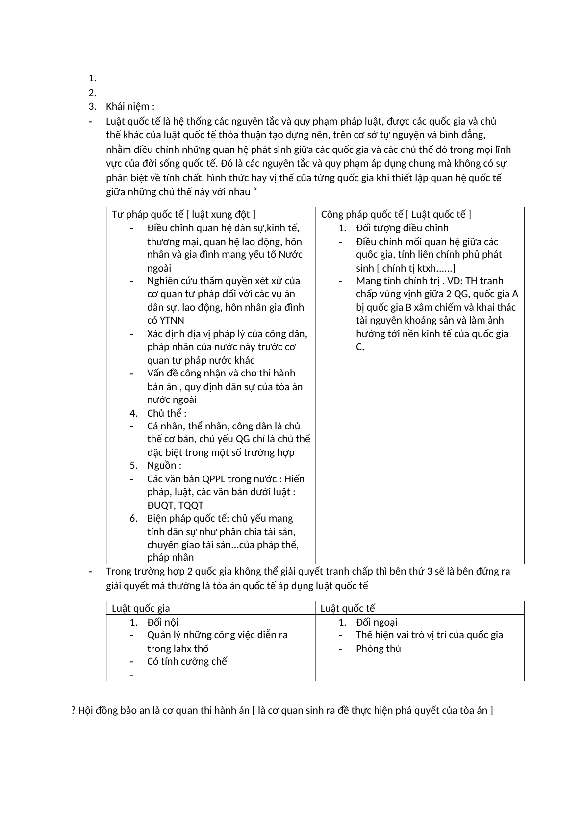 giải quyết mà thường là tòa án quốc tế áp dụng luật quốc tế Luật quốc gia Luật quốc tế 1. Đối nội 1. Đối ngoại -