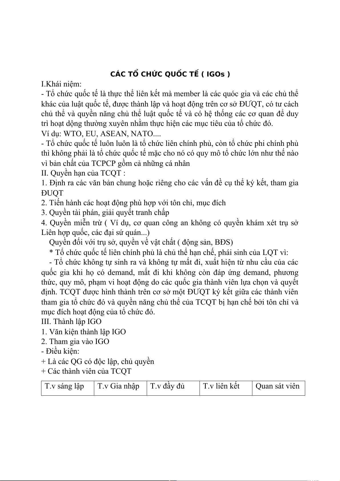 - Tổ chức quốc tế là thực thể liên kết mà member là các quóc gia và các chủ thể