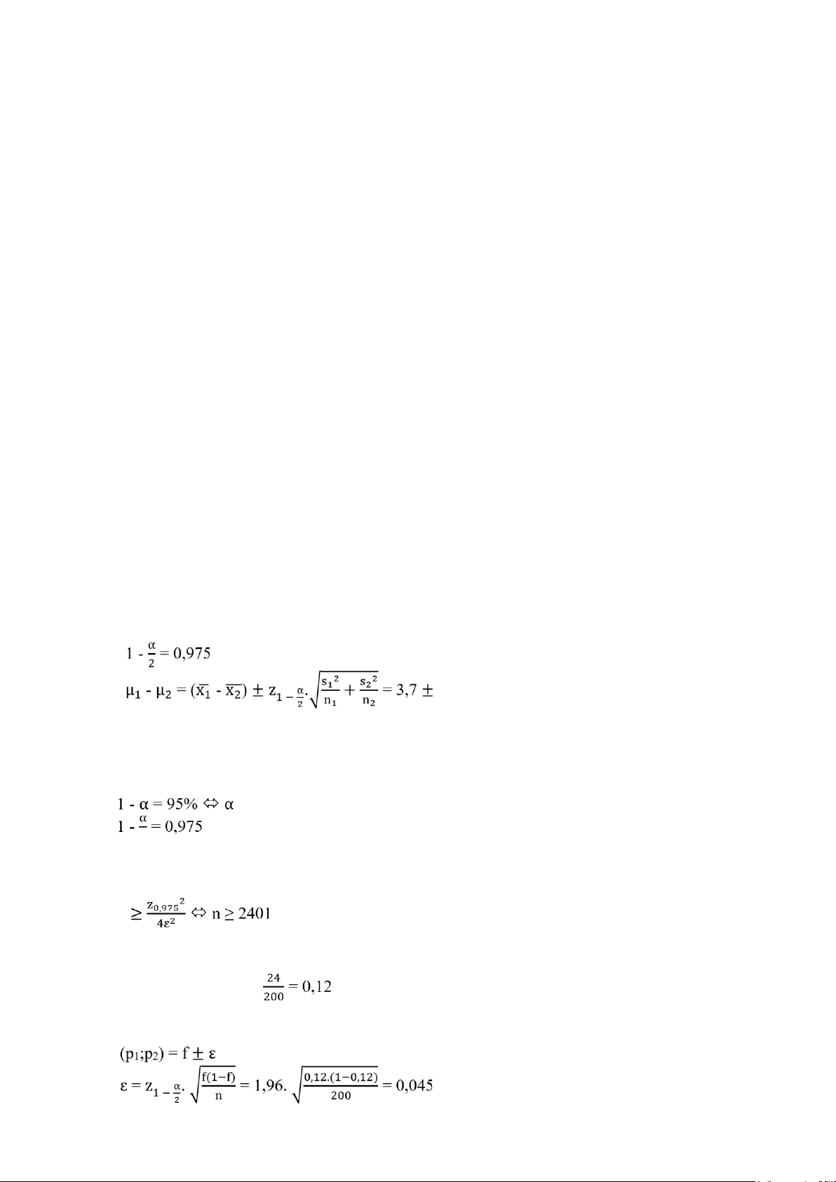 μ2-μ1 ≤ 0,2 (x̅ + ε) - (x̅ - ε) ≤ 0,2 2ε ≤ 0,2 n ≥ 21,035