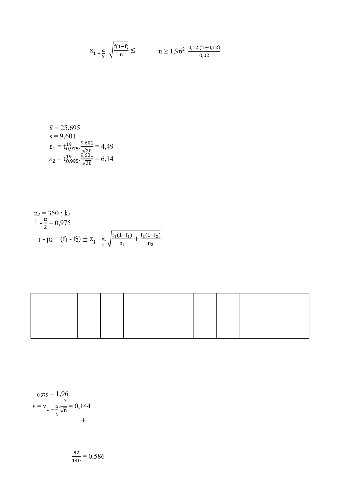 (2,039;2,327) b) x = 28 + 19 + 16 + 11 + 7 + 1 = 82 n = 140 ; f = z0,99 = 2,326 16 lOMoAR cPSD| 47205411 √ √ 2