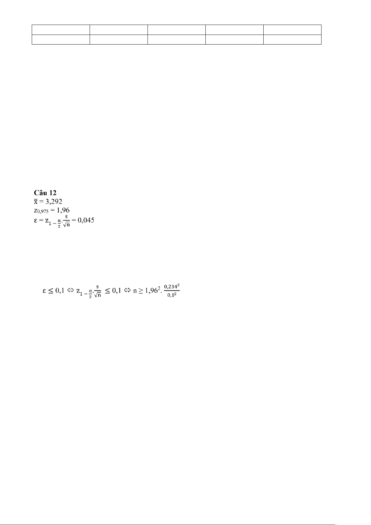 n = 100 ; x̅ = 3,292 ; s = 0,234 =>A Câu 11 B (Vì n=100>30)