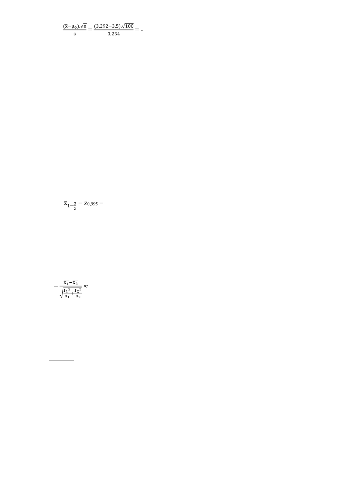 n = 140 ; x̅ = 2,183 ; s = 0,870 a) z (μ1; μ2) = 2,183 0,144 =