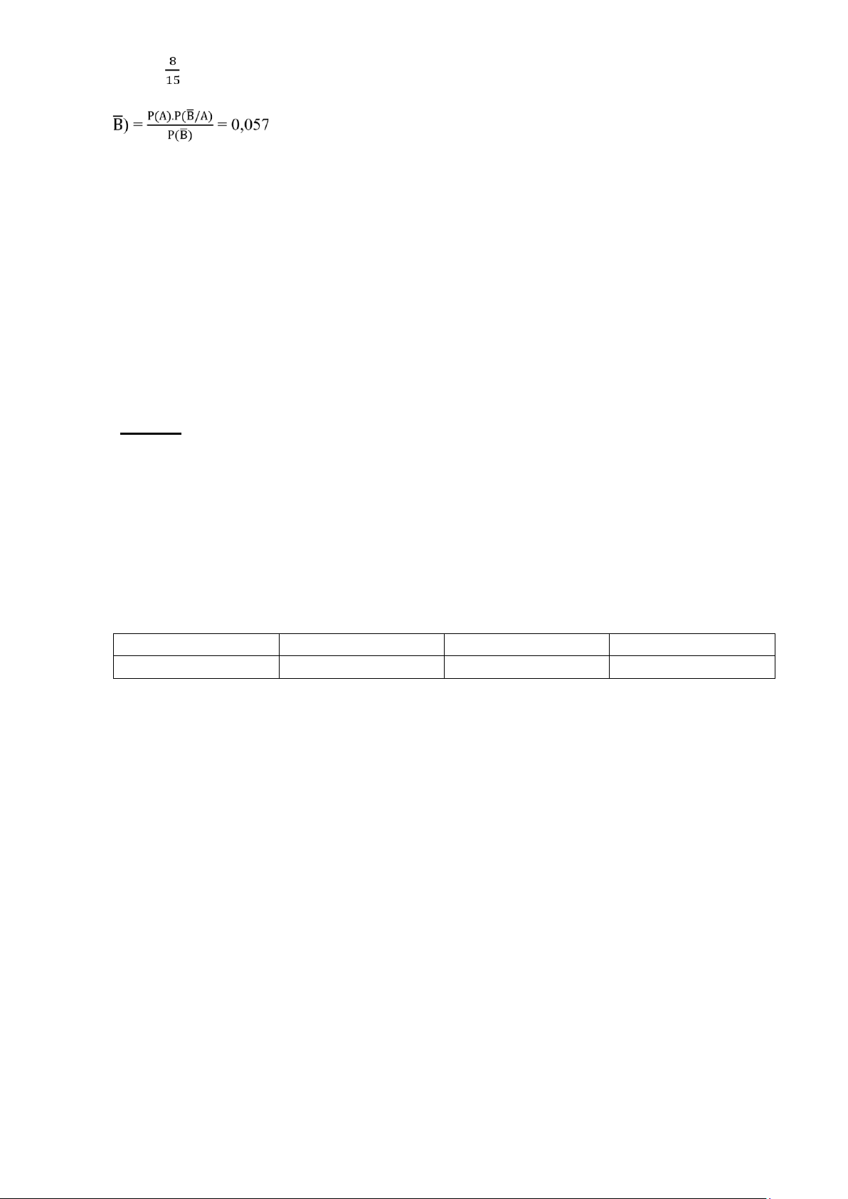 = 0,5.0,3 = 0,15 => Không chọn C Bài toán Ta có: P(A) = 0,8 P(B/A) = 0,6 P(B/A̅̅) = 0,3 Câu 4