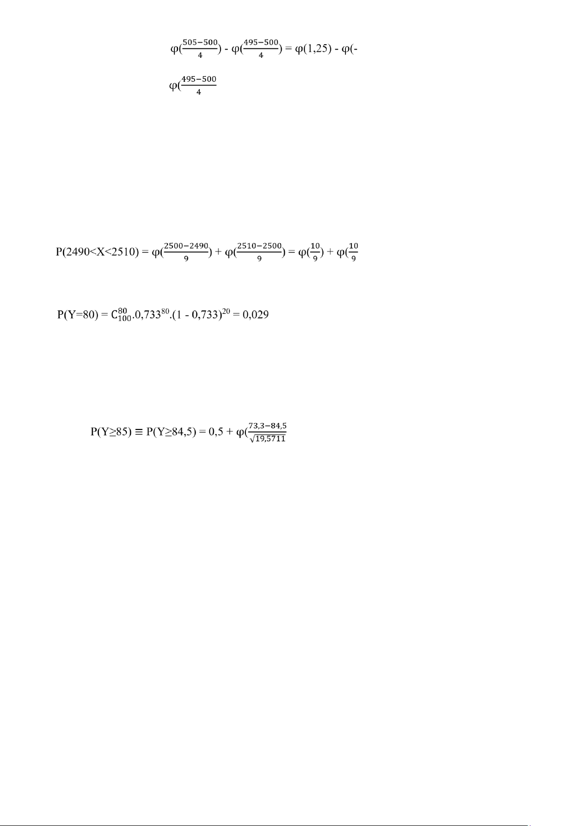 σ2 = np(1 - p) = 100.0,733.(1 - 0,733) = 19,5711 =>Y~N(73,3;19,5711)