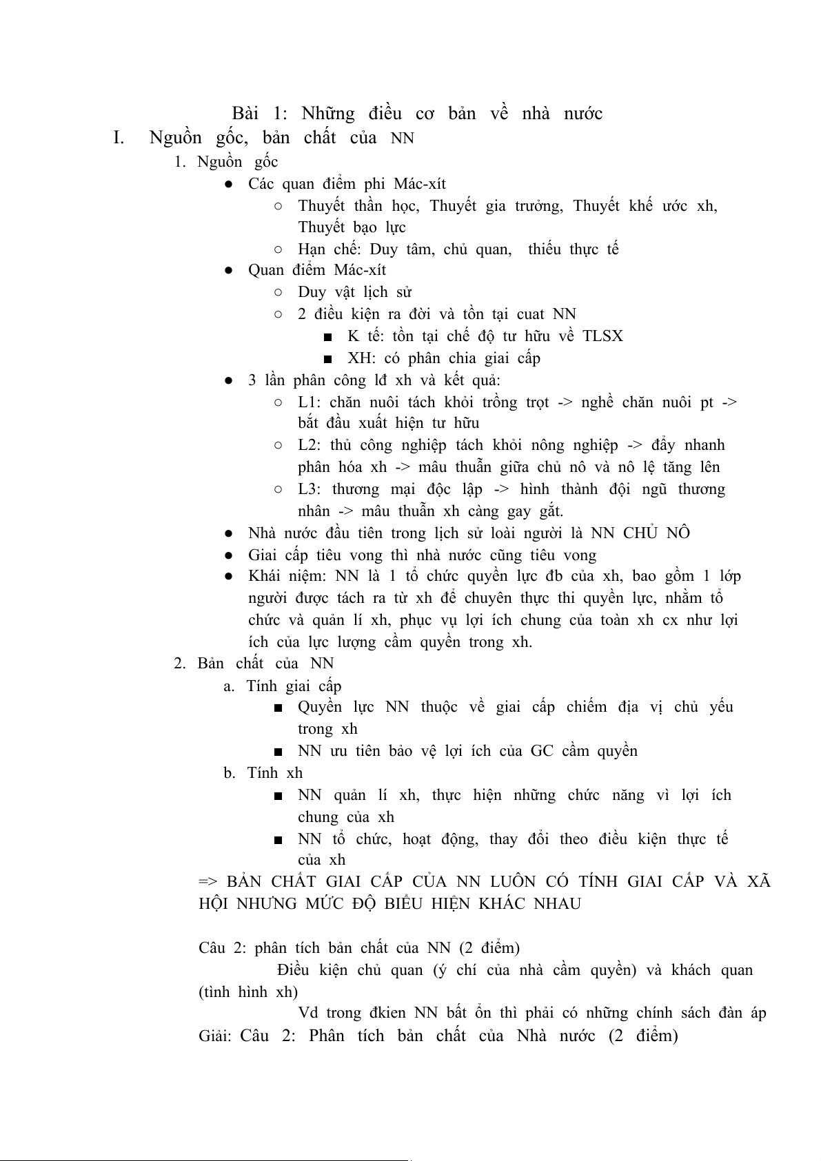 Giải: Câu 2: Phân tích bản chất của Nhà nước (2 điểm)