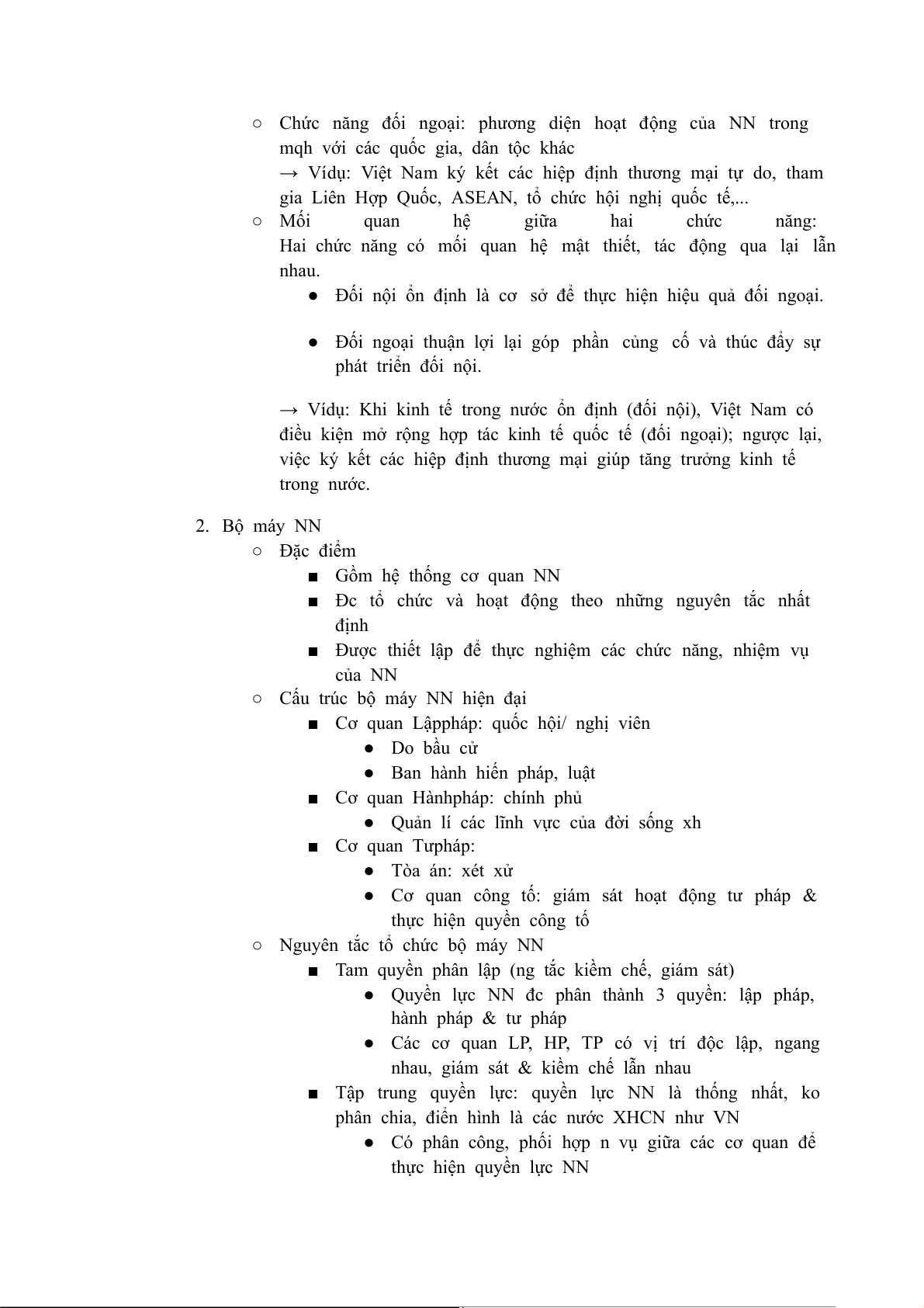 việc ký kết các hiệp định thương mại giúp tăng trưởng kinh tế trong nước. 2. Bộ máy NN ○ Đặc điểm