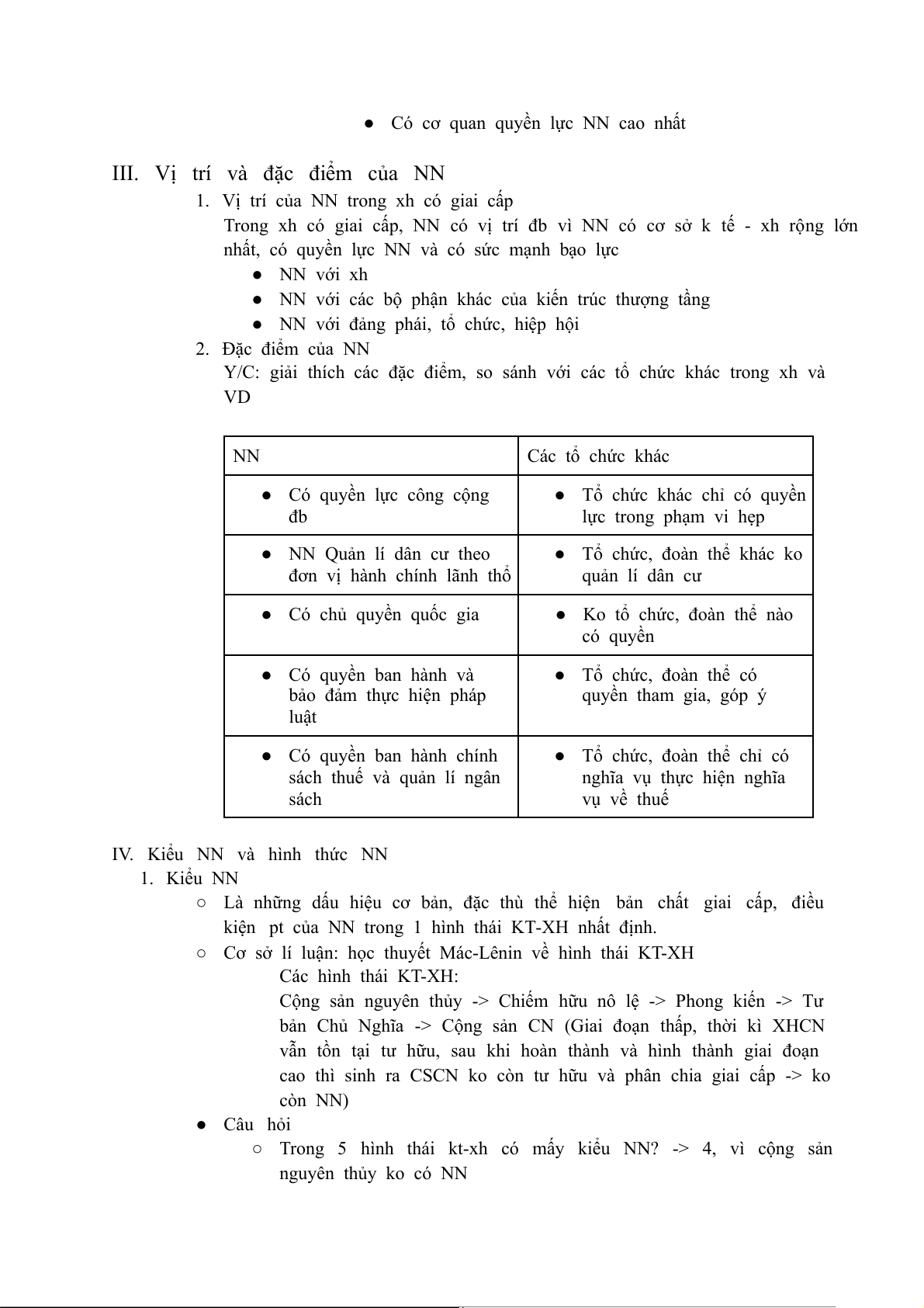 nhất, có quyền lực NN và có sức mạnh bạo lực ● NN với xh