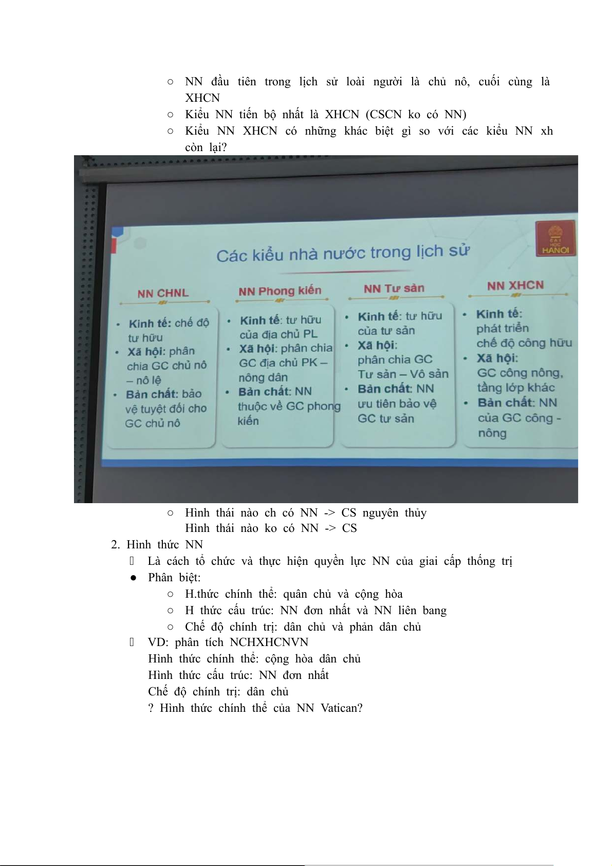 1. Vị trí của NN trong xh có giai cấp