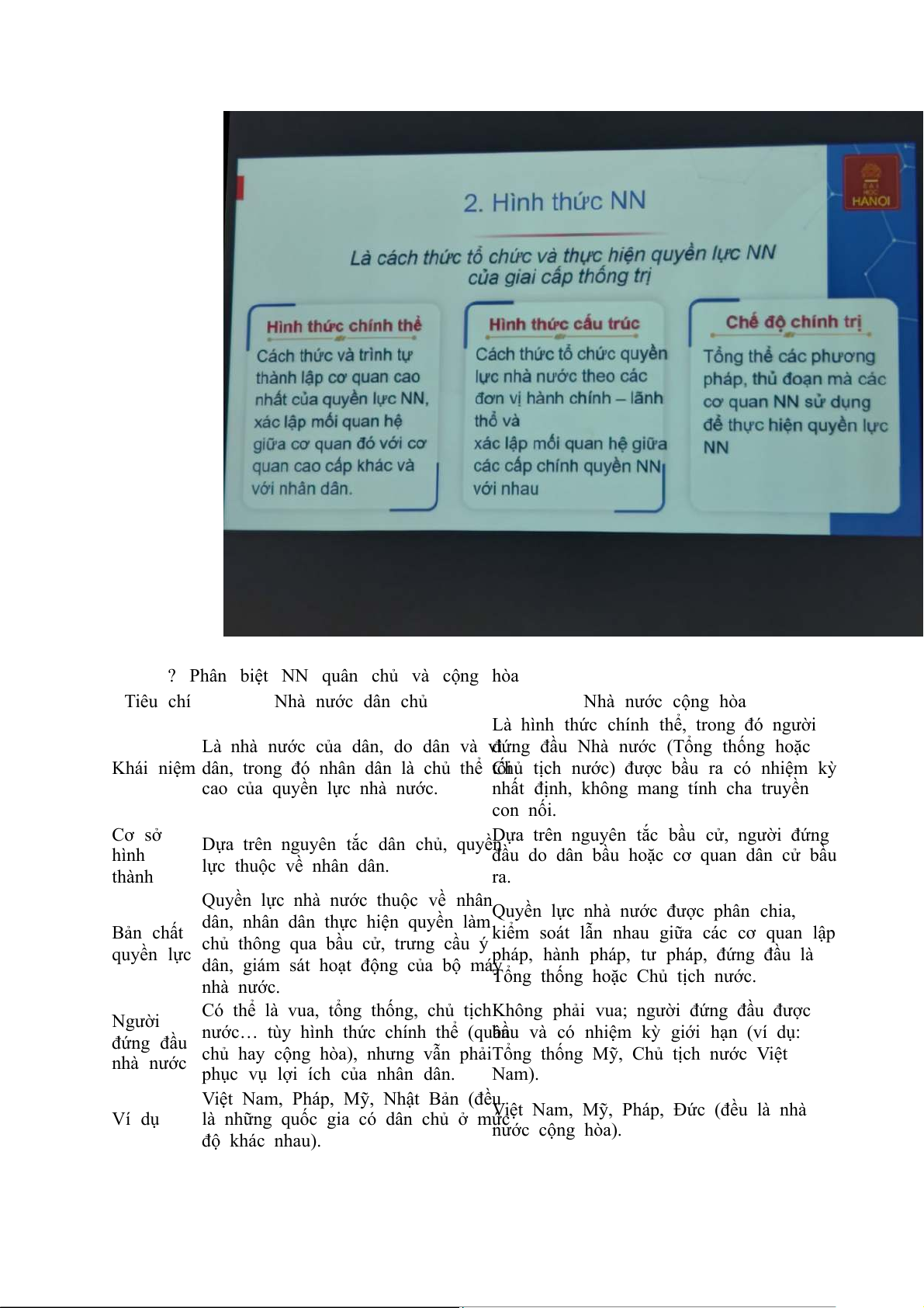 ● Quyền lực NN đc phân thành 3 quyền: lập pháp, hành pháp & tư pháp
