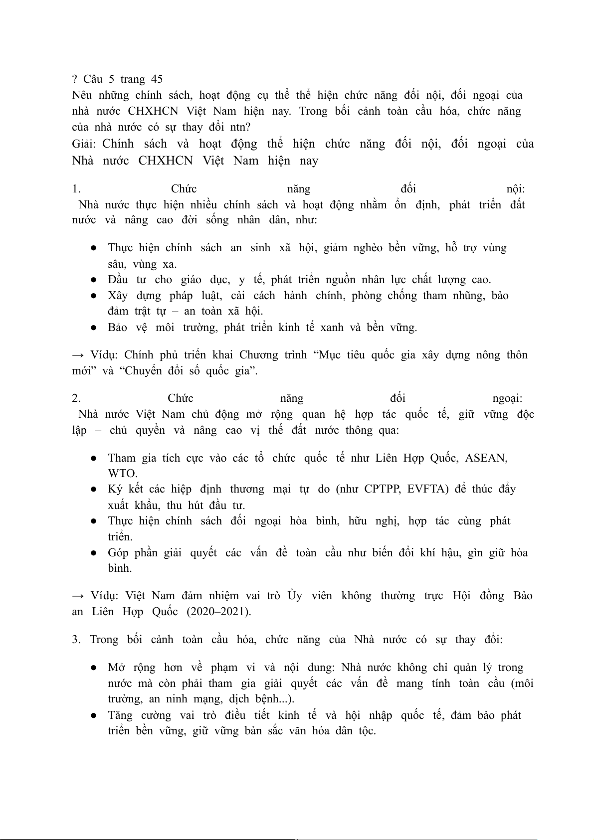 nhà nước CHXHCN Việt Nam hiện nay. Trong bối cảnh toàn cầu hóa, chức năng