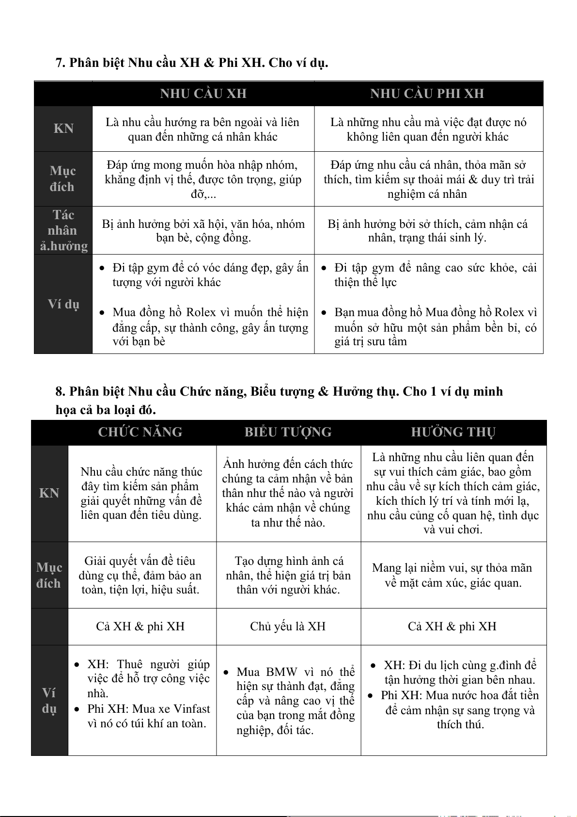 7. Phân biệt Nhu cầu XH & Phi XH. Cho ví dụ. NHU CẦU XH NHU CẦU PHI XH KN