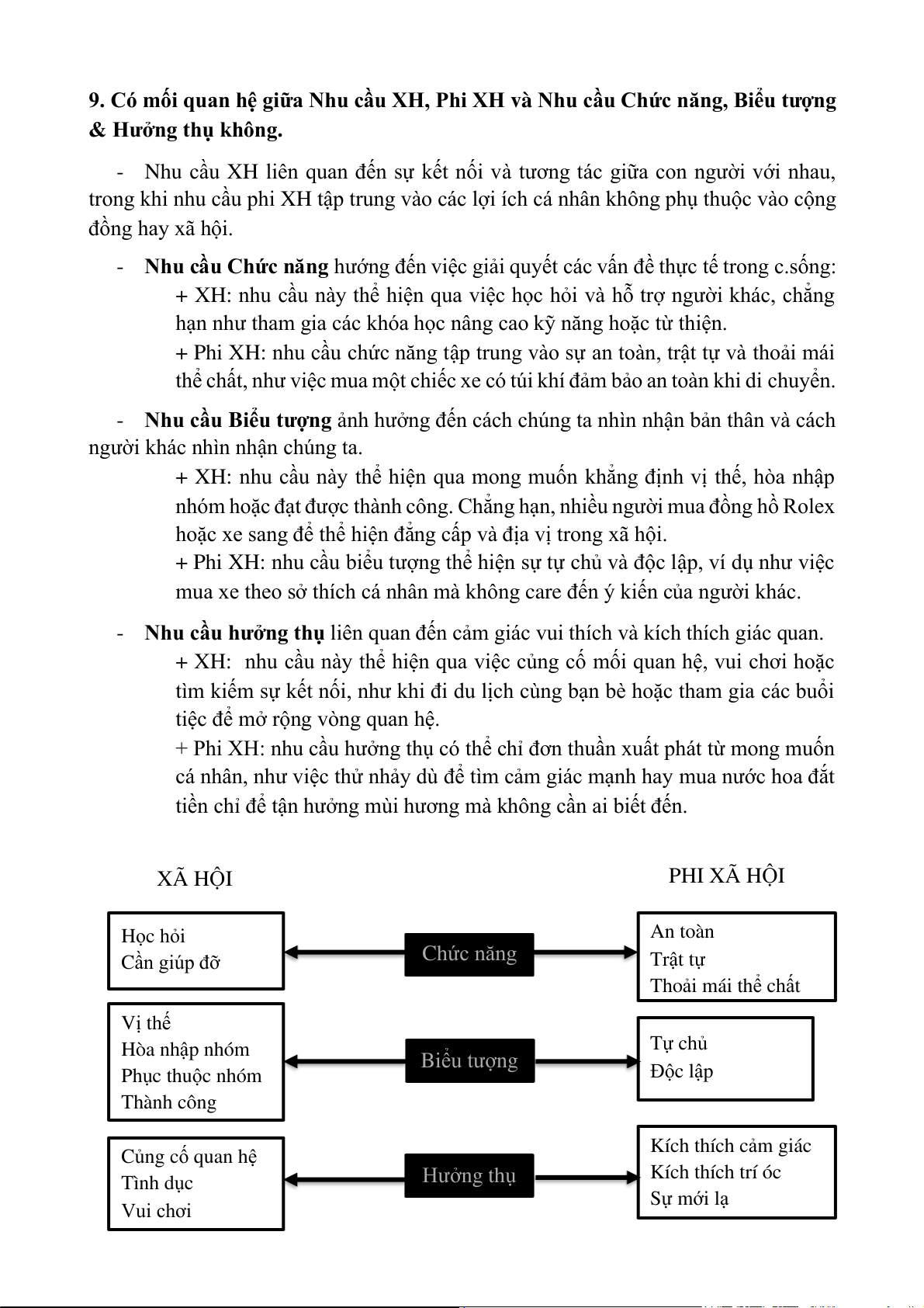 9. Có mối quan hệ giữa Nhu cầu XH, Phi XH và Nhu cầu Chức năng, Biểu tượng