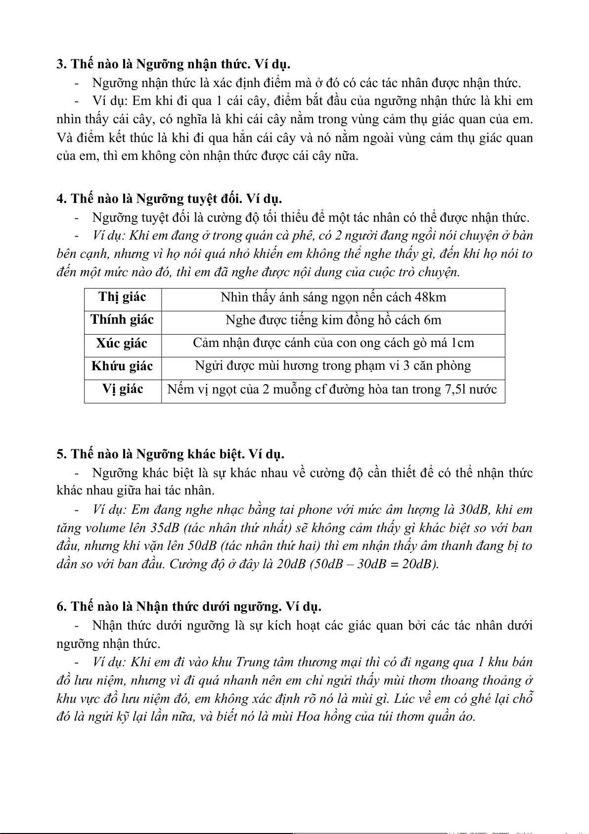 5. Thế nào là Ngưỡng khác biệt. Ví dụ.