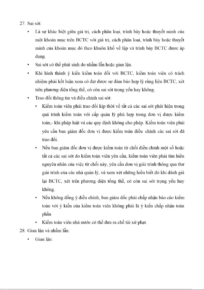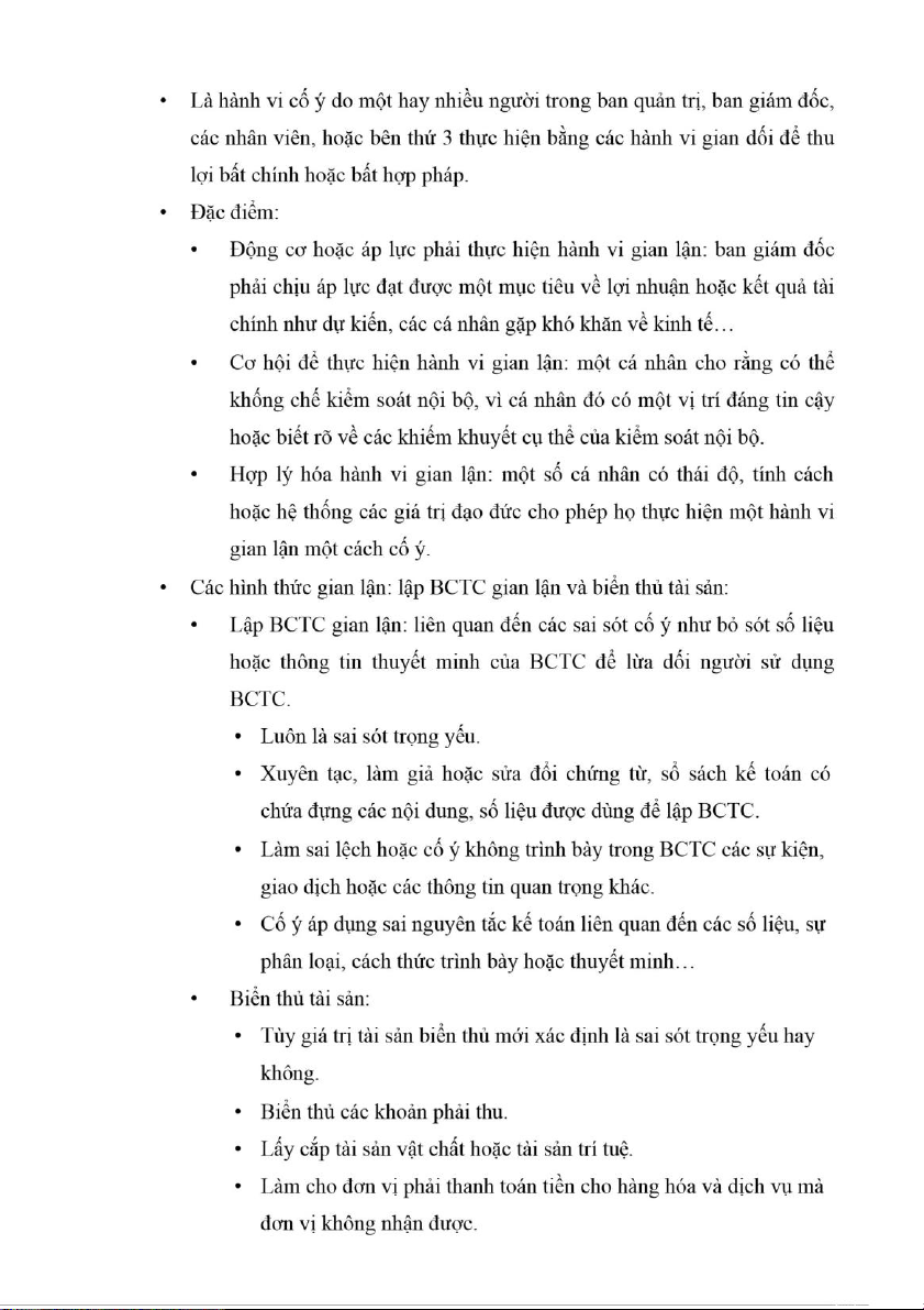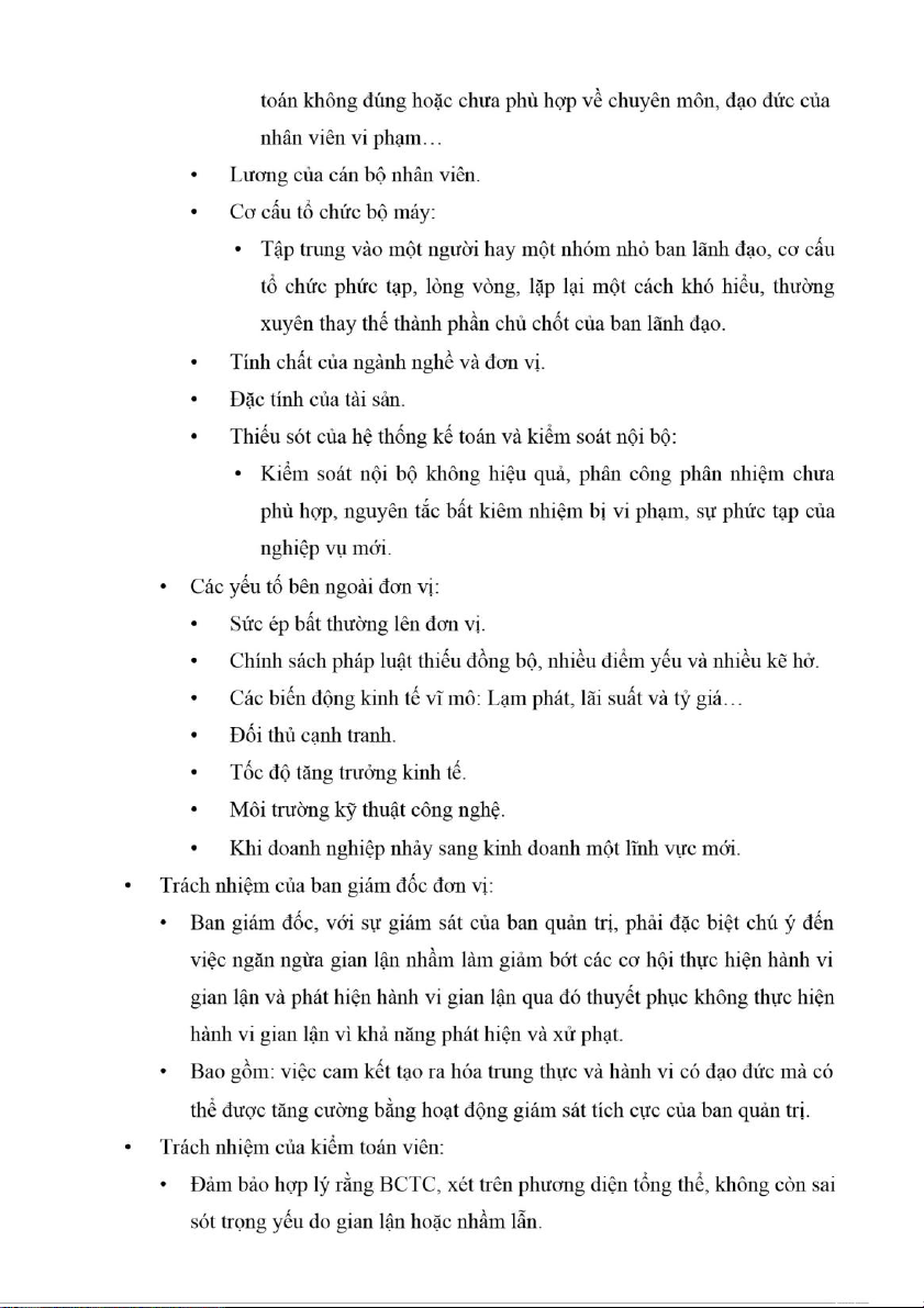 • Các nhân tố ảnh hưởng đến gian lận và nhầm lẫ n: