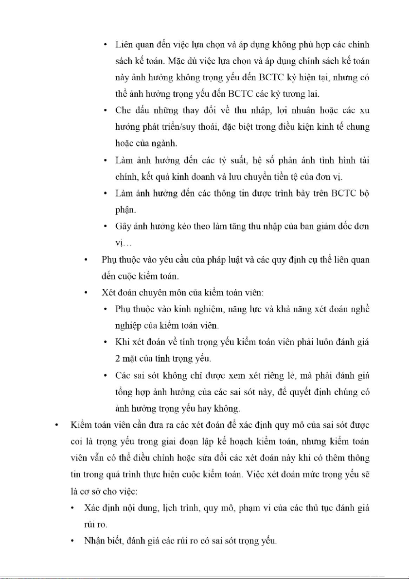 • Phụ thuộc quy mô tần suất xảy ra mà có phải là sai sót trọng yếu hay khô ng • Các biểu hiệ n: •