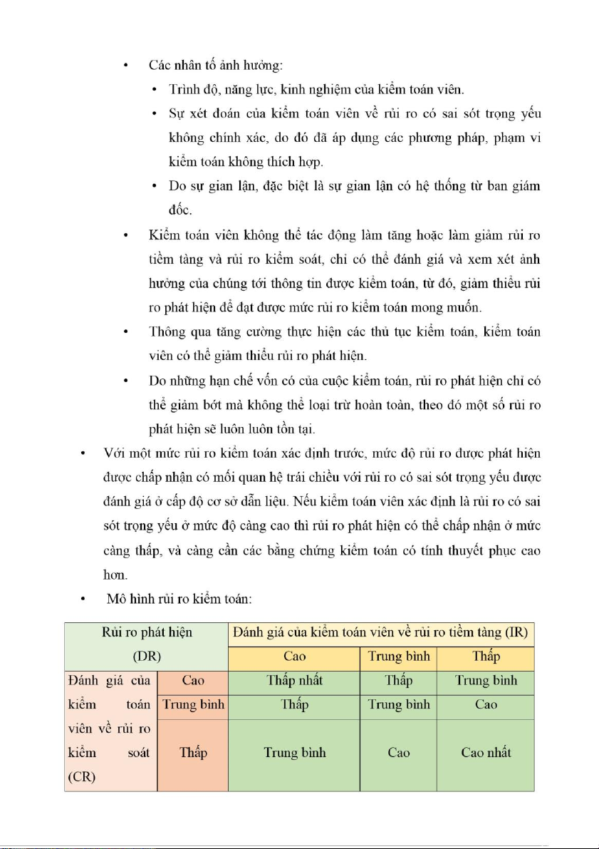 • Các yếu tố khác thuộc về kiểm soát nội bộ của doanh nghi ệp. • Rủi ro phát hiệ n: •