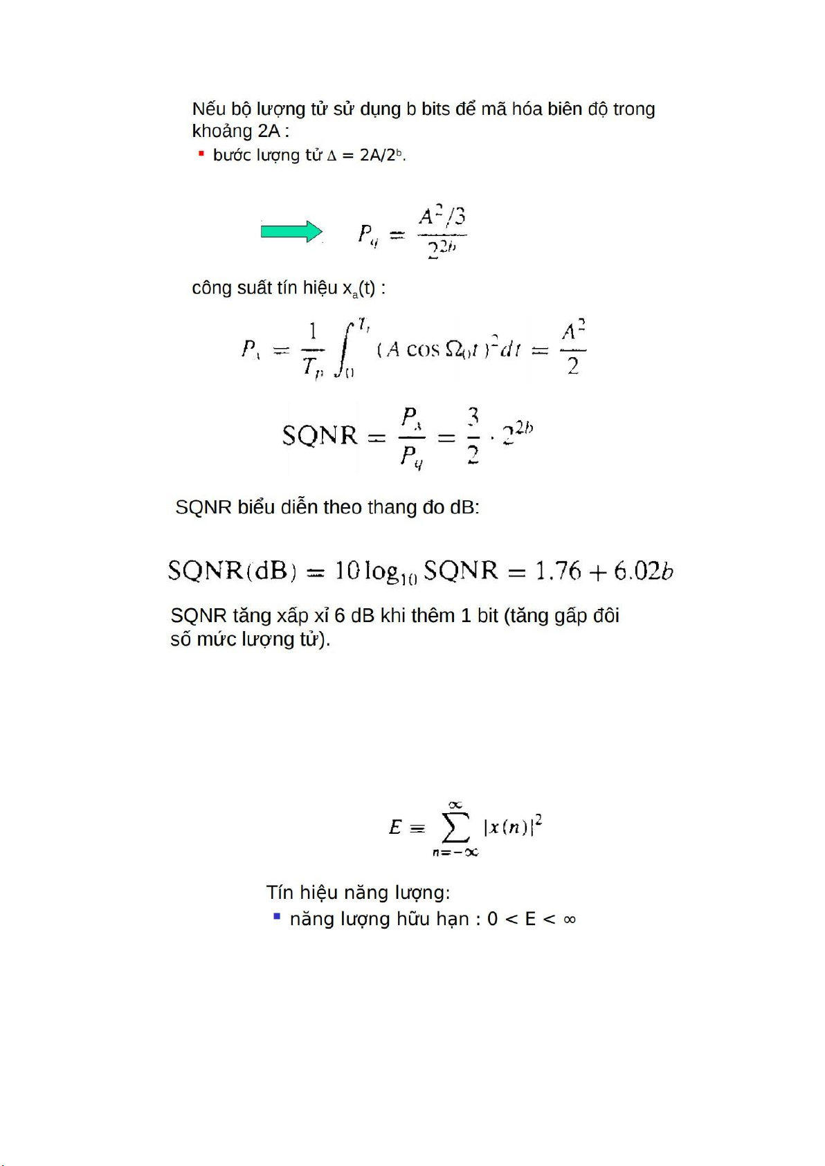 - xq(n) là tín hiệu sau lượng tử (rounding hoặc truncation) - Lỗi lượng tử: eq(n) = xq(n) - x(n)