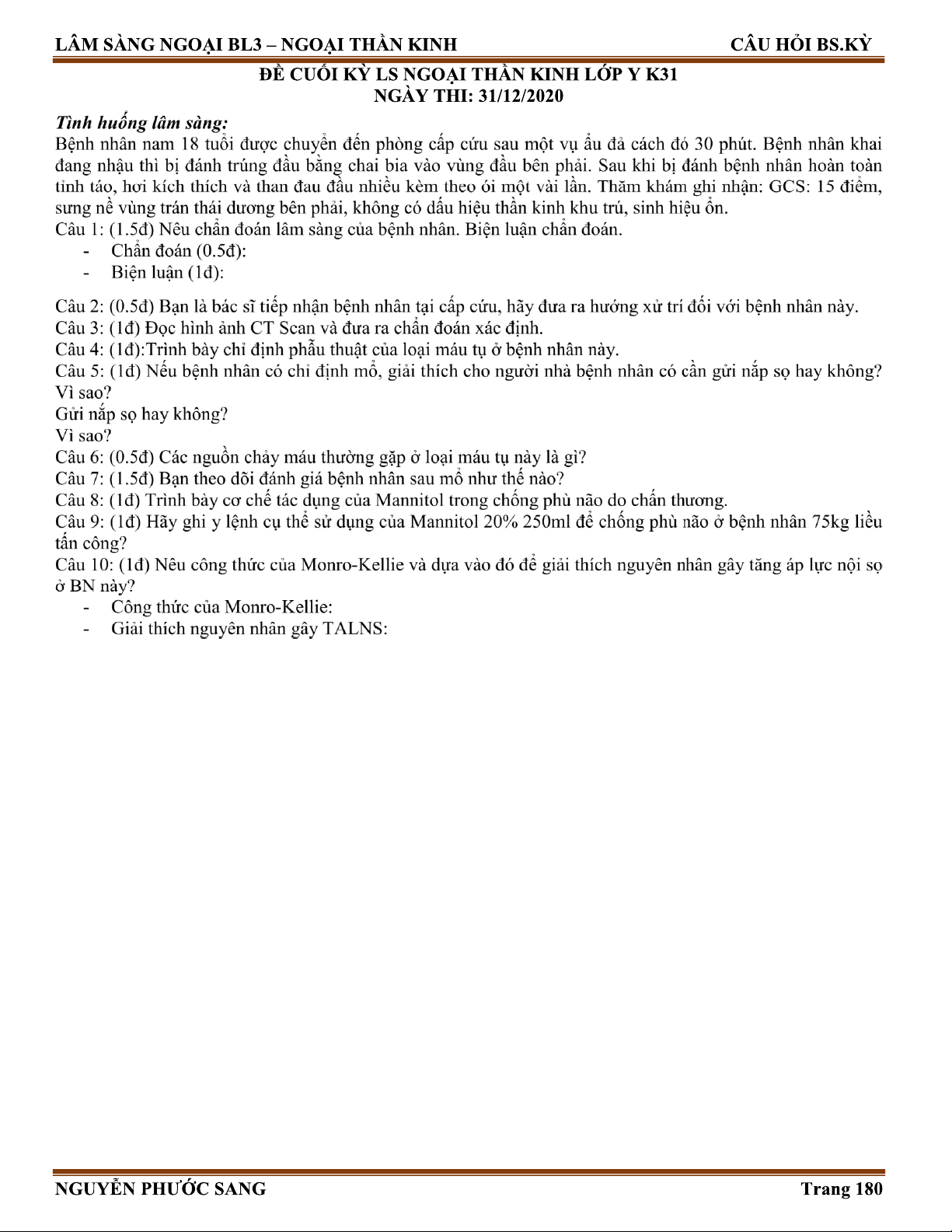 Môn: Ngoại thần kinh 9 tài liệu