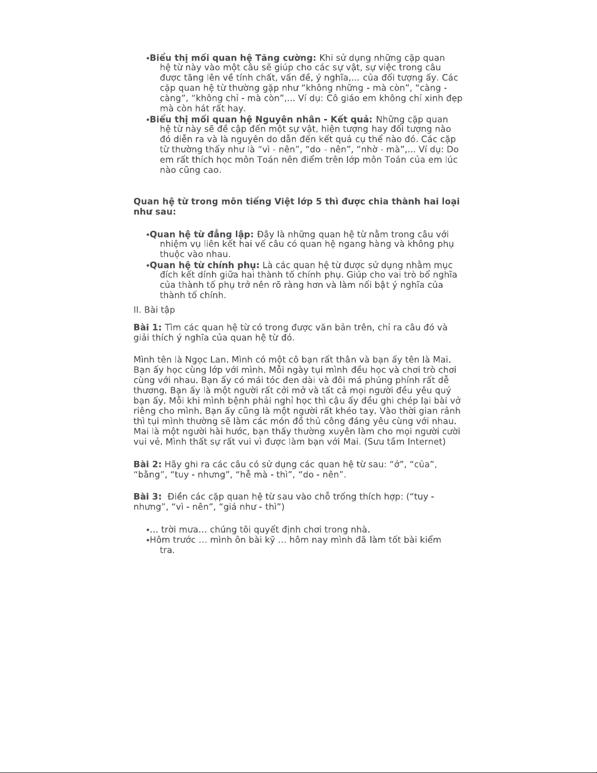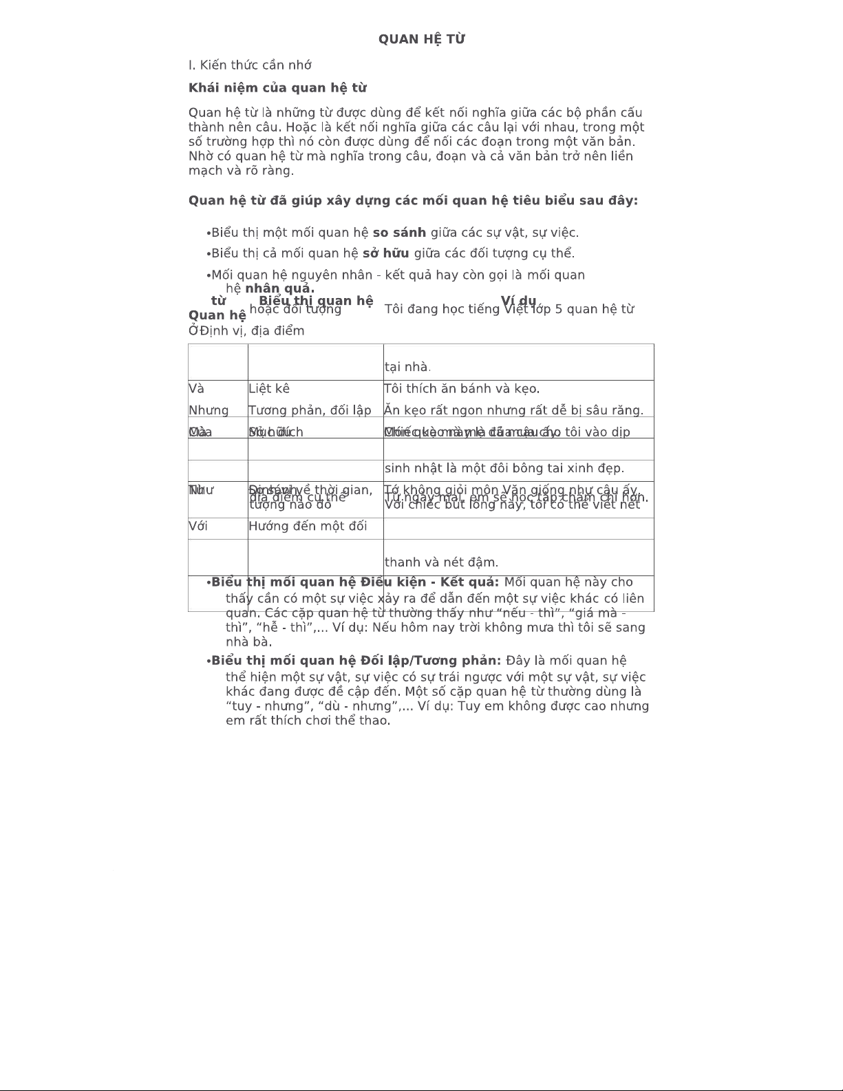 Tổng Hợp Kiến Thức Về Quan Hệ Từ - Tiếng Việt Lớp 5