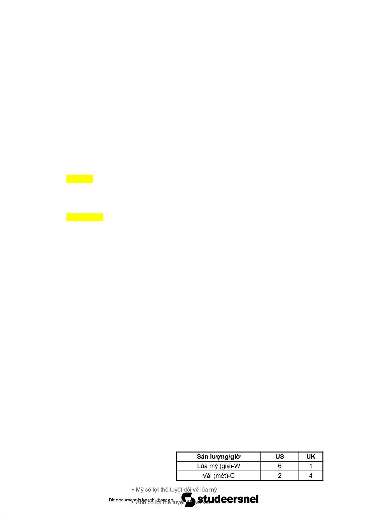 Lợi thế so sánh là sự khác biệt tương đối về năng suất lao động (hay chi phí lao động)