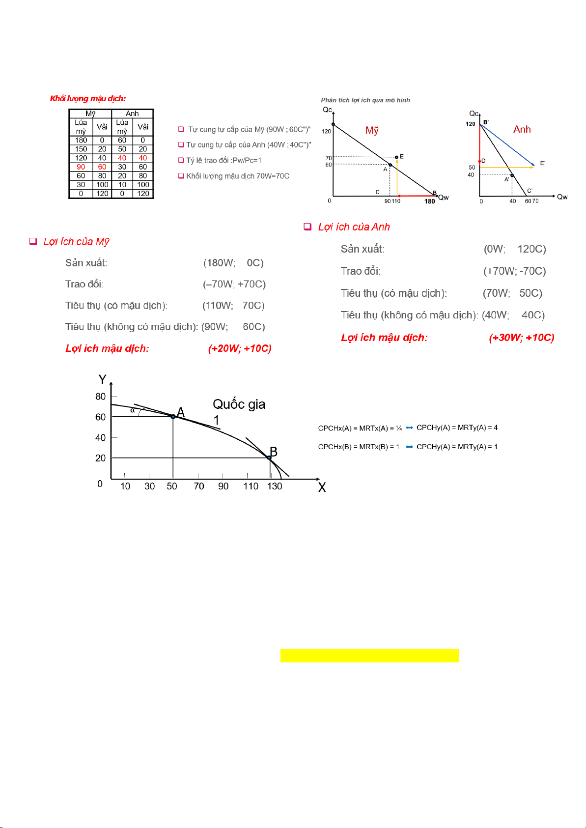 Nội dung lý thuyết (mô hình mậu dịch): nếu mỗi quốc gia chuyên môn hóa sản xuất