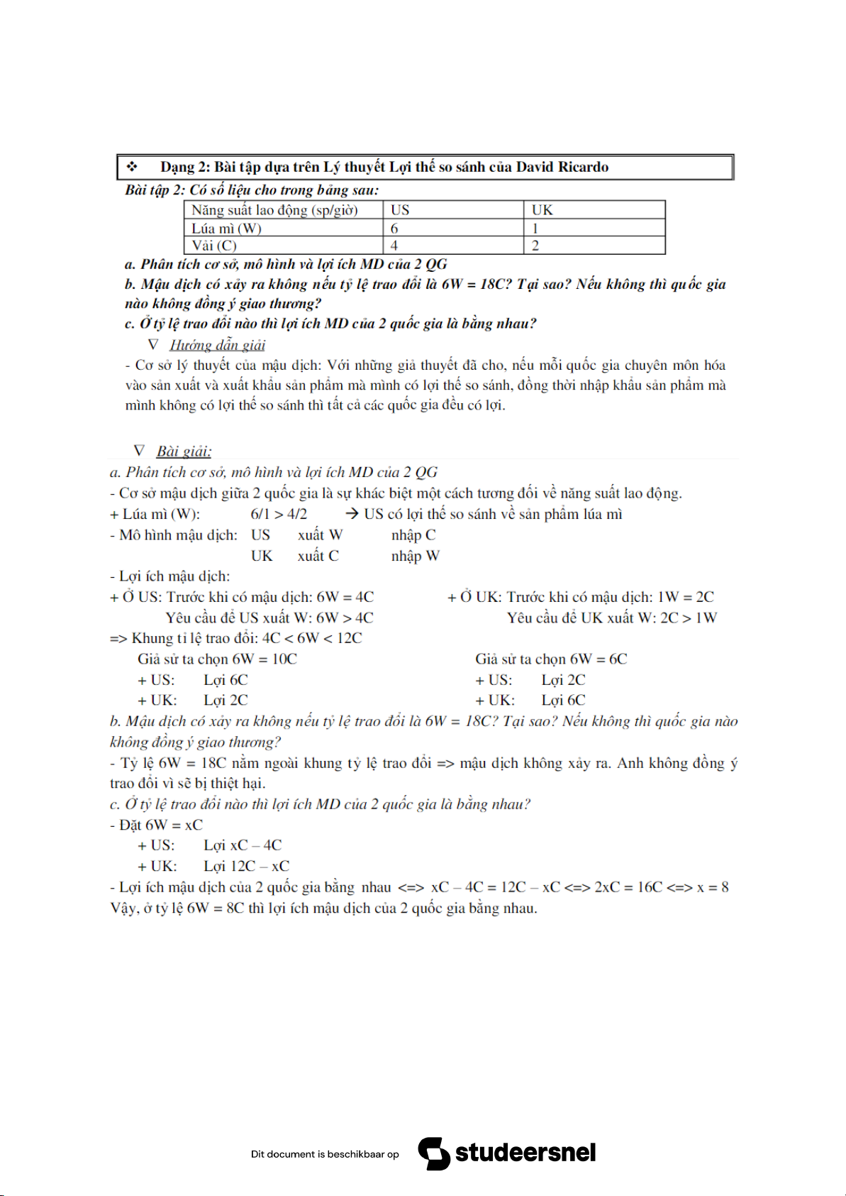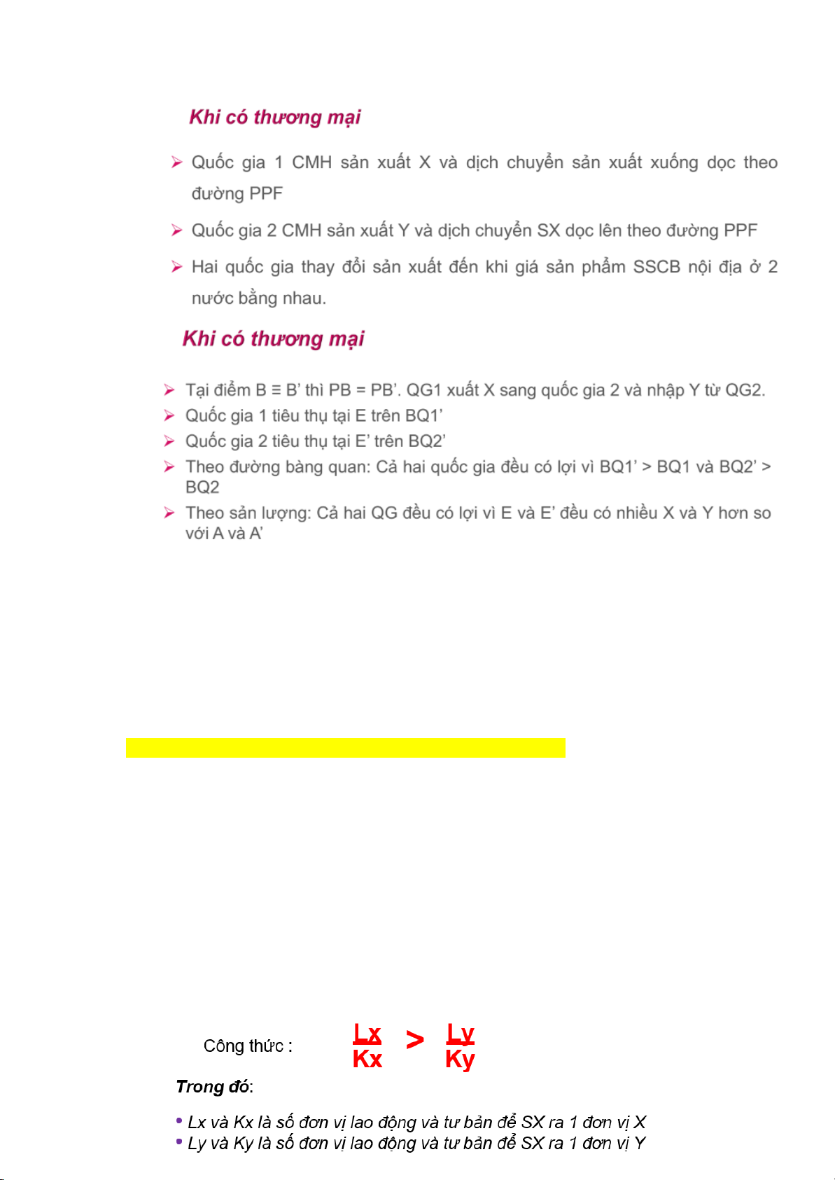 + Lao động là yếu tố sx duy nhất và tự do di chuyển trong khuôn khổ 1 QG,