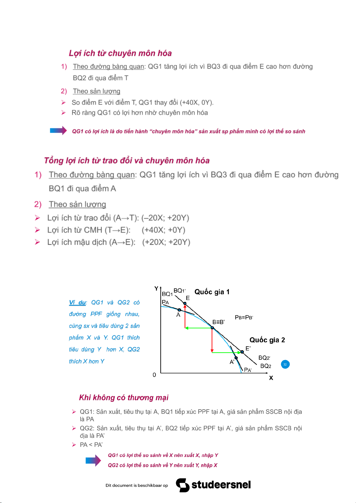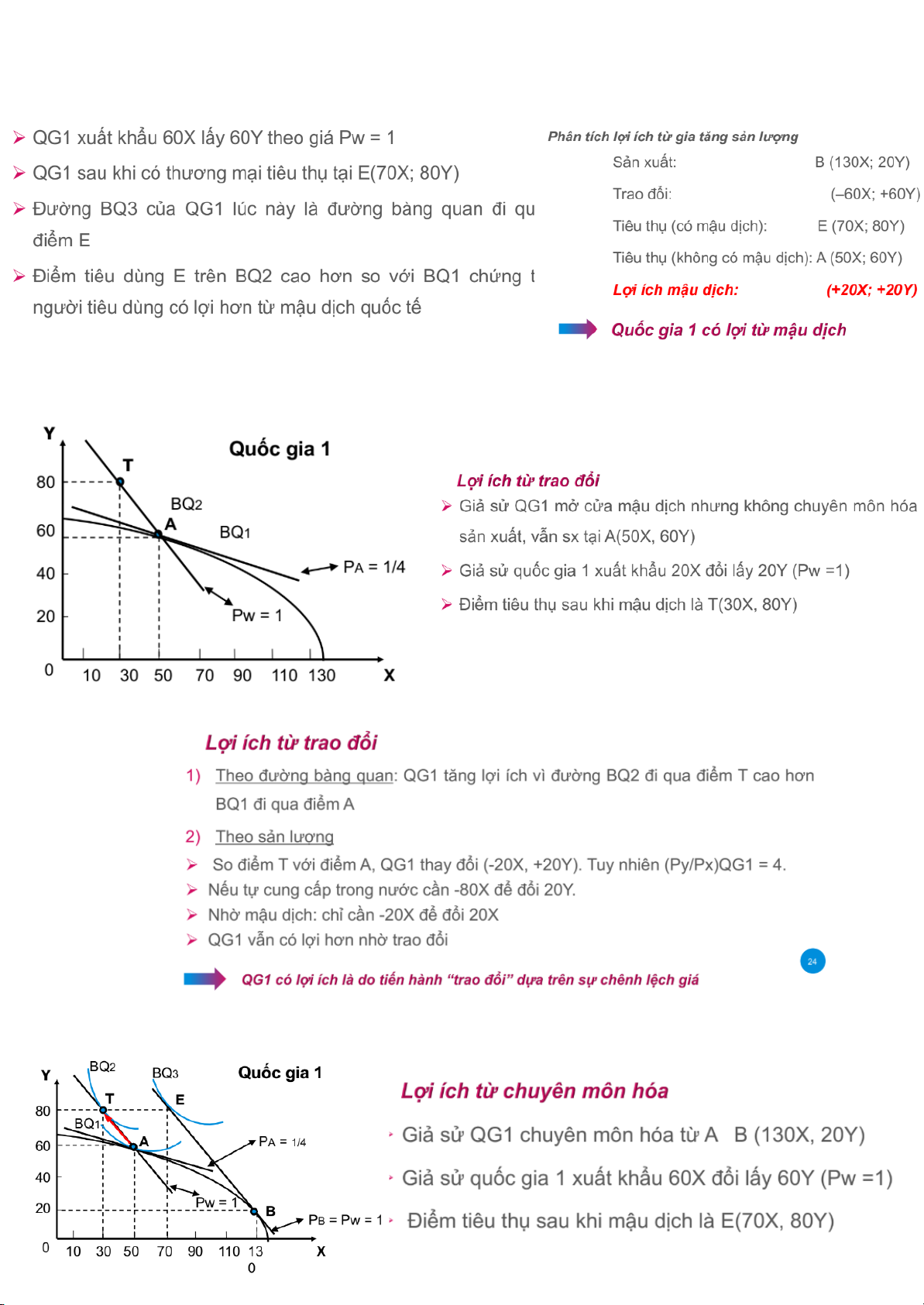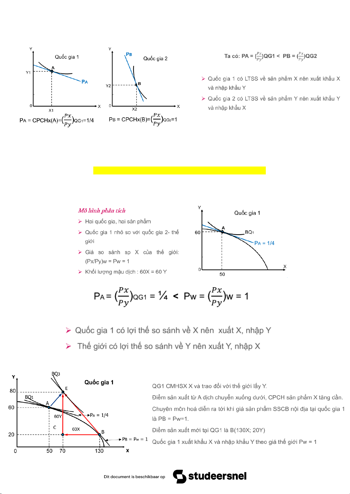 Px/Py tại 1 nước > thế giới do của QG đó có độ nghiêng lớn hơn → QG có lợi thế trong sản xuất Y